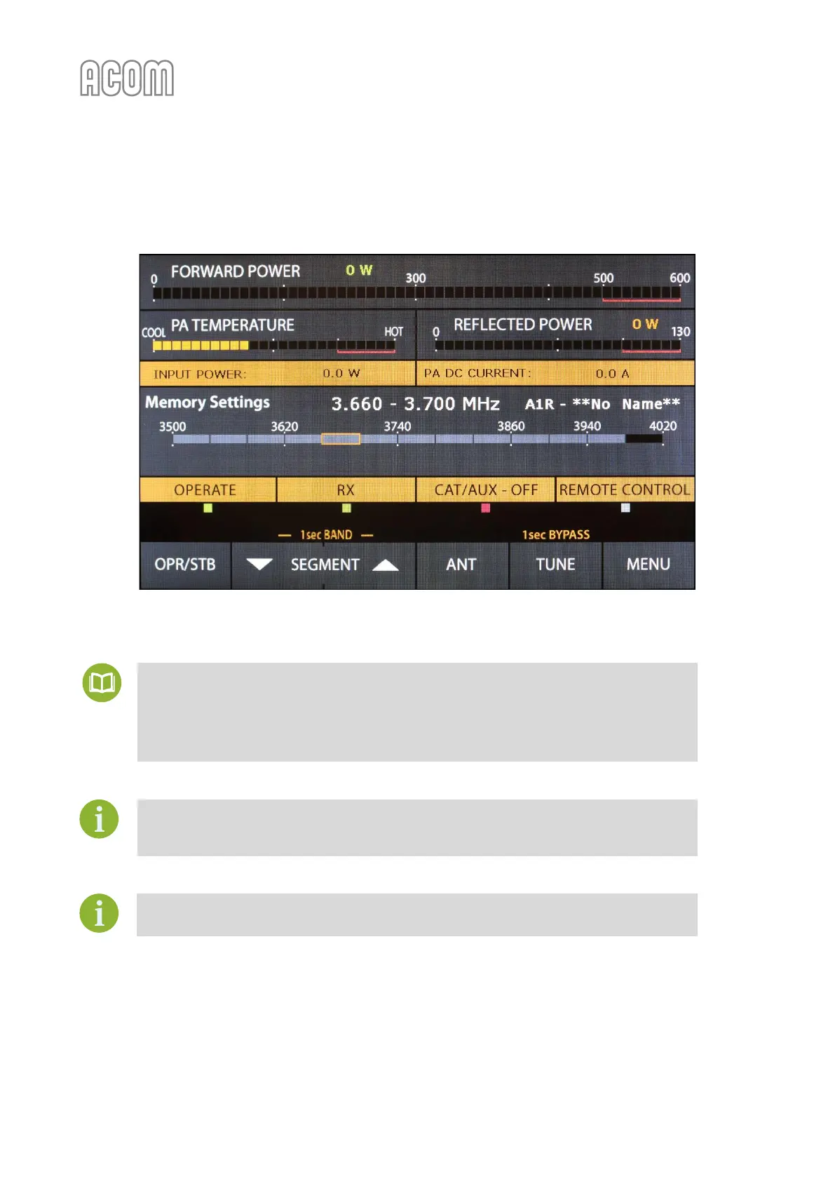 Figure 4-3 | ACOM 500S amplifier screen with ACOM 04AT or 06AT antenna tuner installed