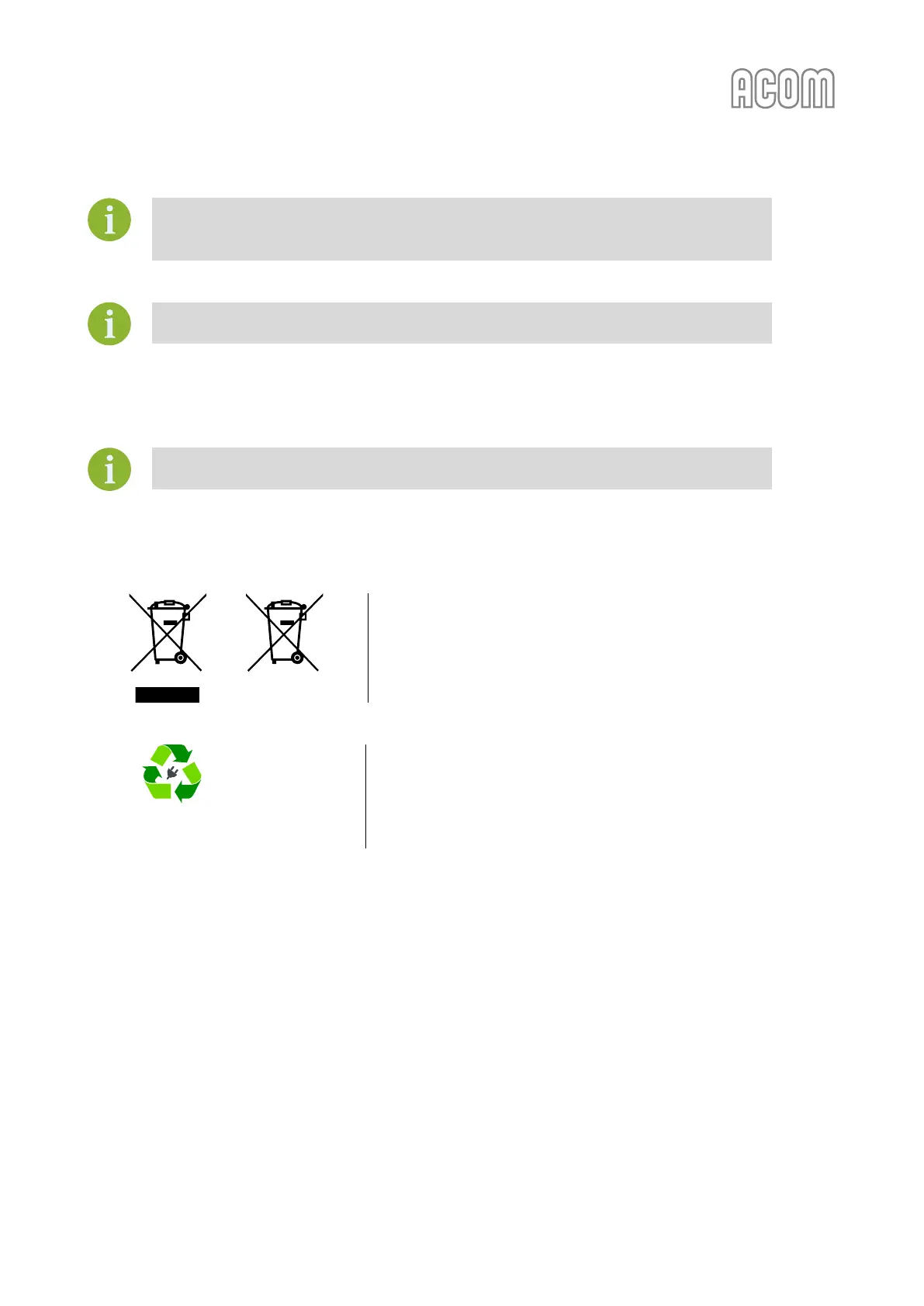 ACOM products cannot be disposed as household waste.