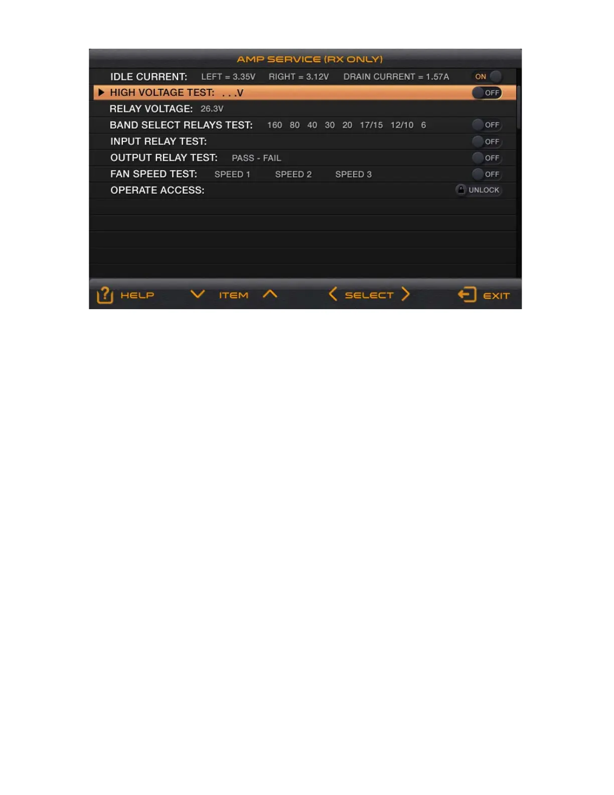 Blocking access to the Operate mode can be controlled using the OPERATE ACCESS option. When the amplifier