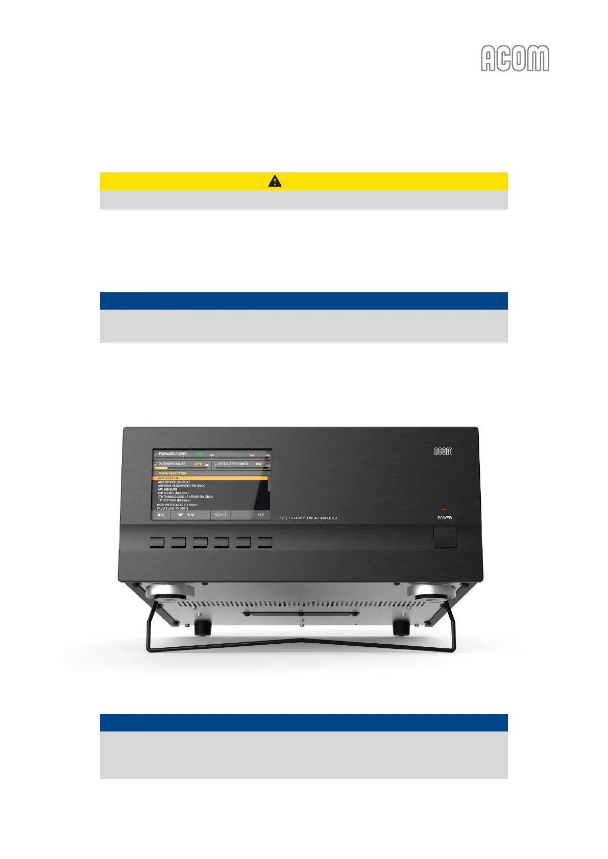 The ACOM 700S is forced air cooled. Keep a minimum clearance distance of 10 cm
