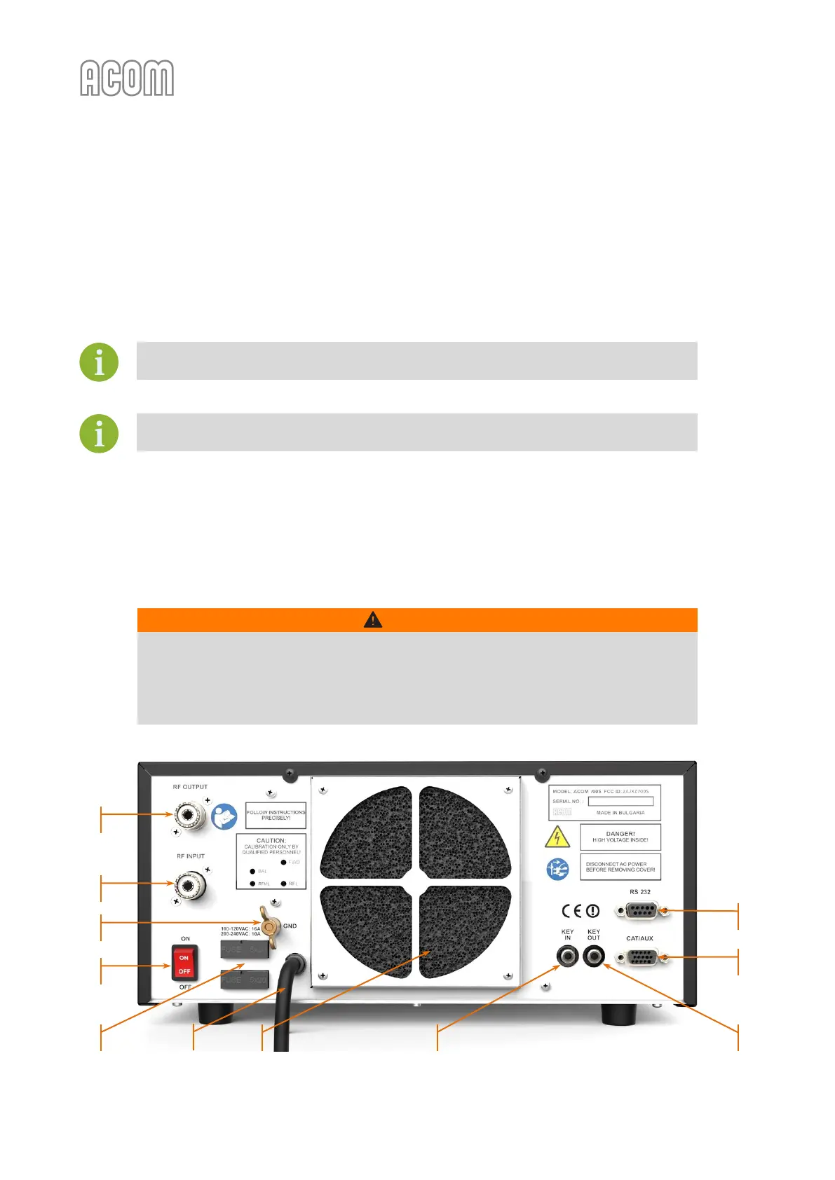 Thanks to the built-in SMPS, the ACOM 700S has no mains line voltage selector to take