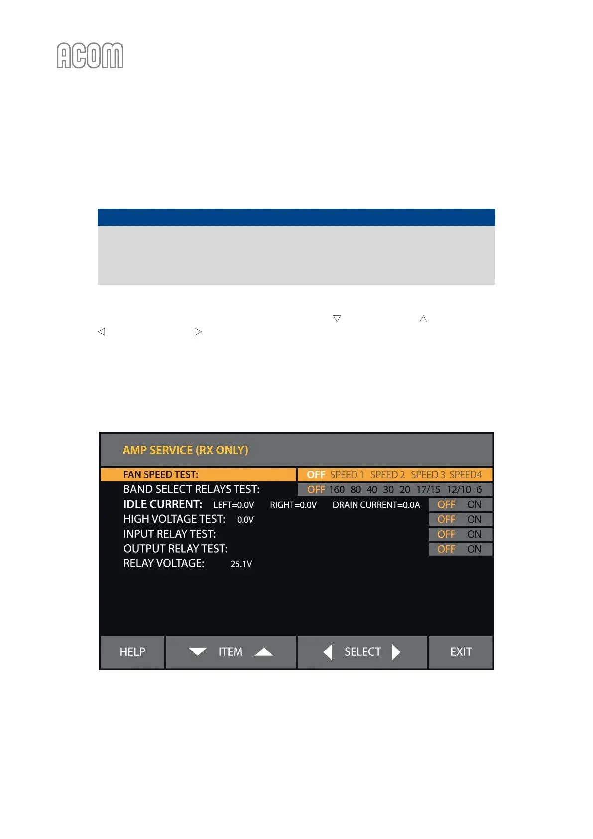 5.2. Menu AMP SERVICE (Amplifier Service Functions)