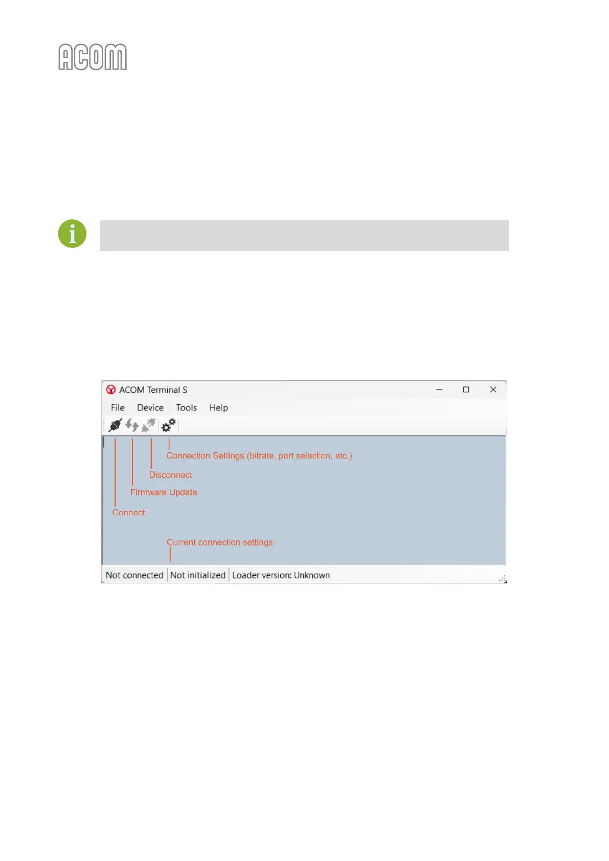 • Start ACOM Terminal S software (We assume that you downloaded Terminal S software