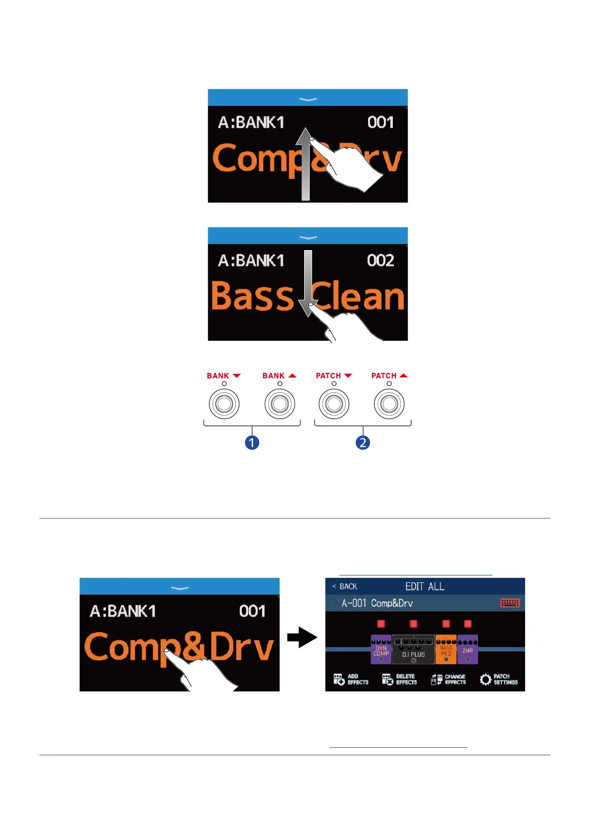 • Touch the patch memory name to open a screen where the patch memory can be edited, allowing effects
