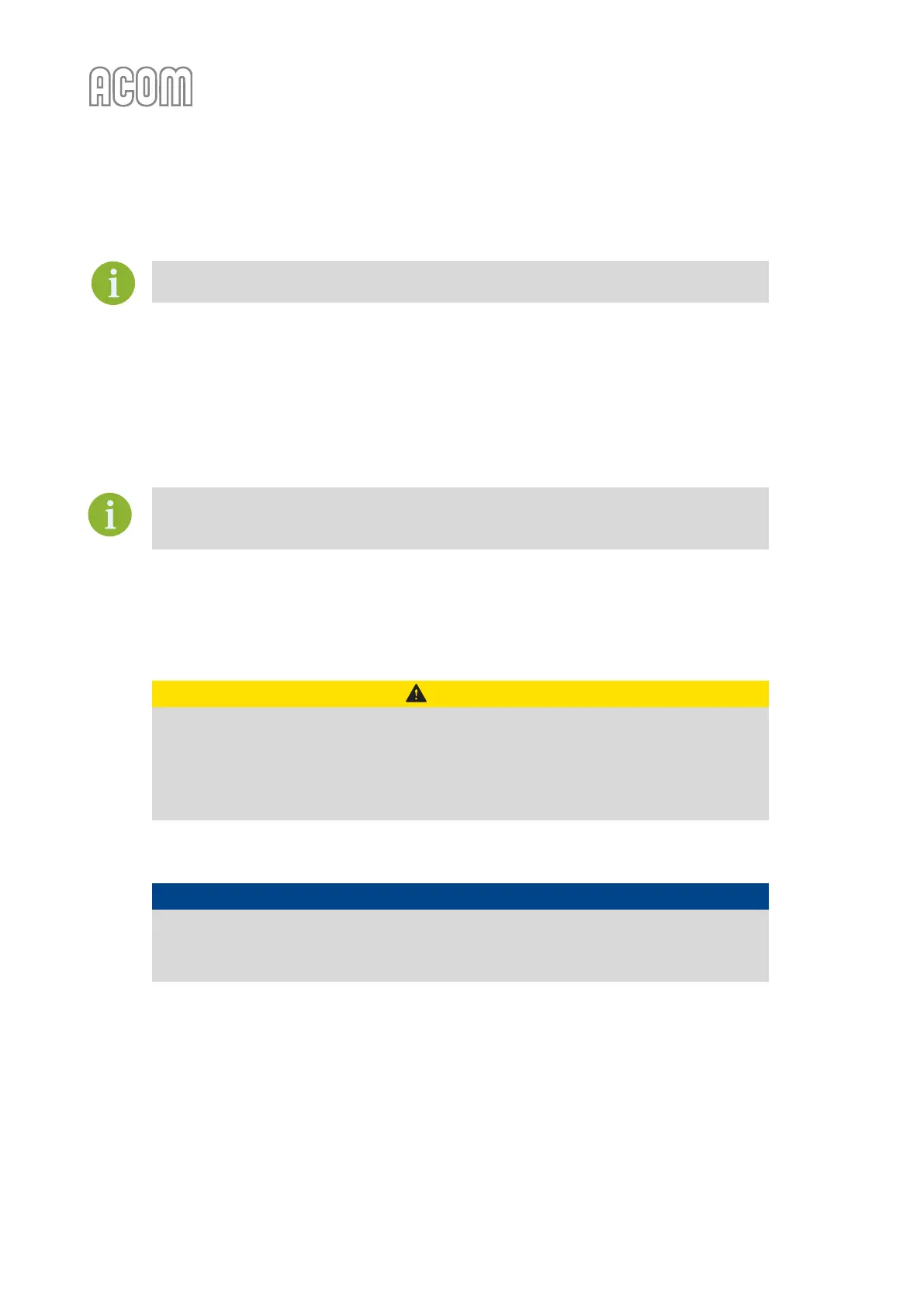 Do not undertake on your own repairs or changes in hardware or software of the ACOM