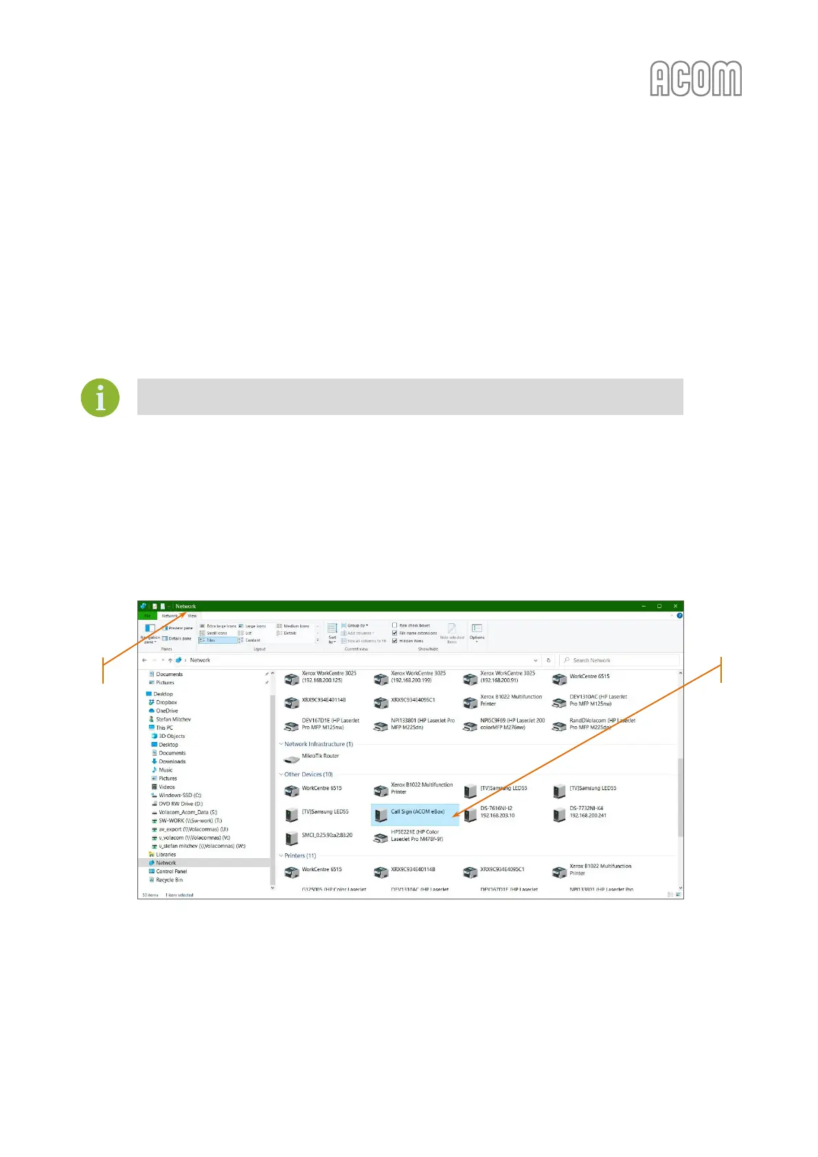 Your PC (or smart phone, tablet, etc.) needs to be connected to the same network as your ACOM eBox