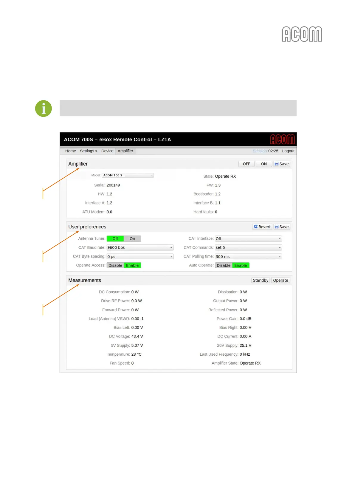 Acom eBox - 5.2.2. ACOM 600 S, 700 S, and 1200 S Amplifier Settings; Figure 5-6 Ebox with ACOM 700 S Connected