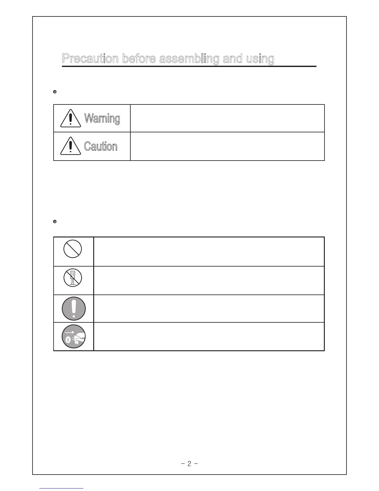 Precaution before assembling and using