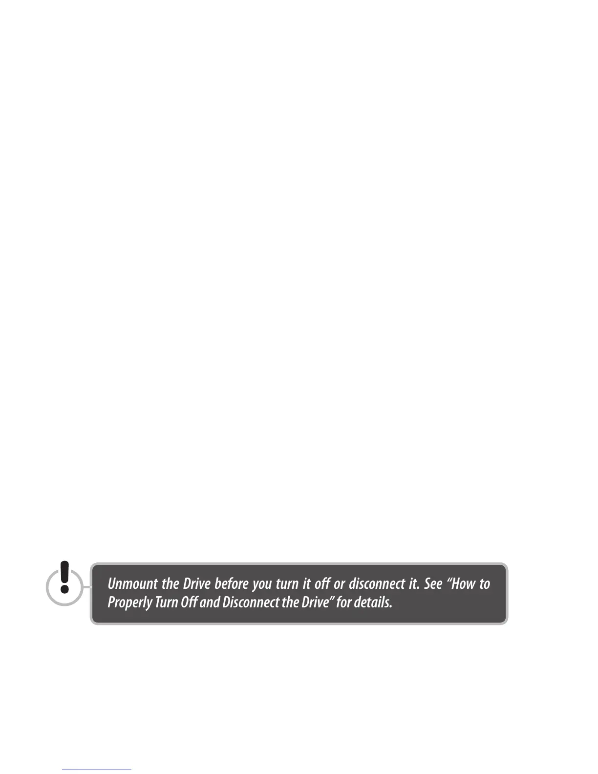 Unmount the Drive before you turn it off or disconnect it. See “How to