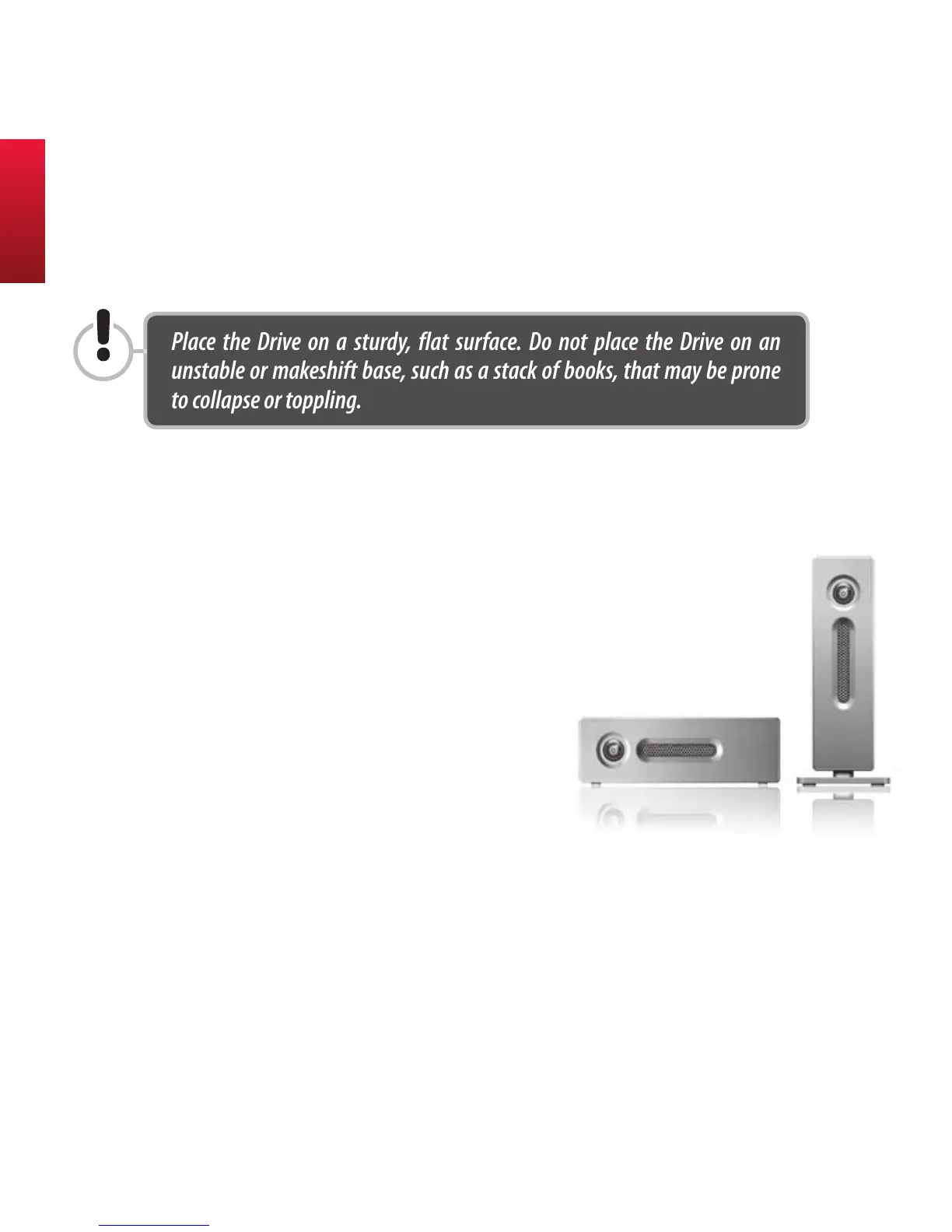 Place the Drive on a sturdy, flat surface. Do not place the Drive on an