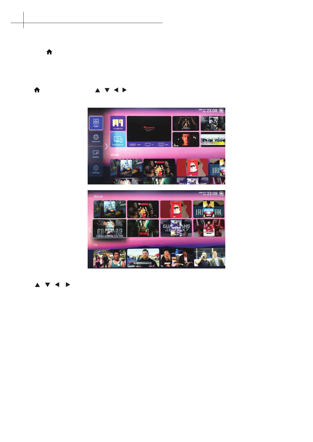 กด / / / เพื่อเลือกภาพยนตร / ทีวี / แอพฮอต / แอพ FAV / เพลง