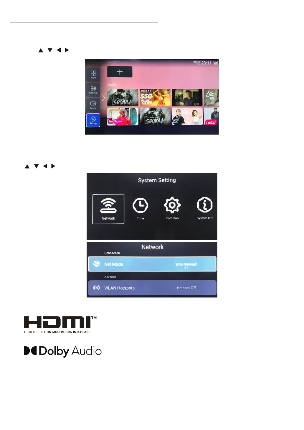 / / / to select the Network. Press BACK to exit.