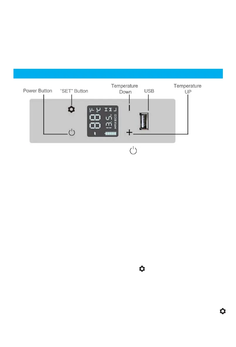 • Temperature Setting: Can be adjusted by the “+” button up to 20℃ (Max) and