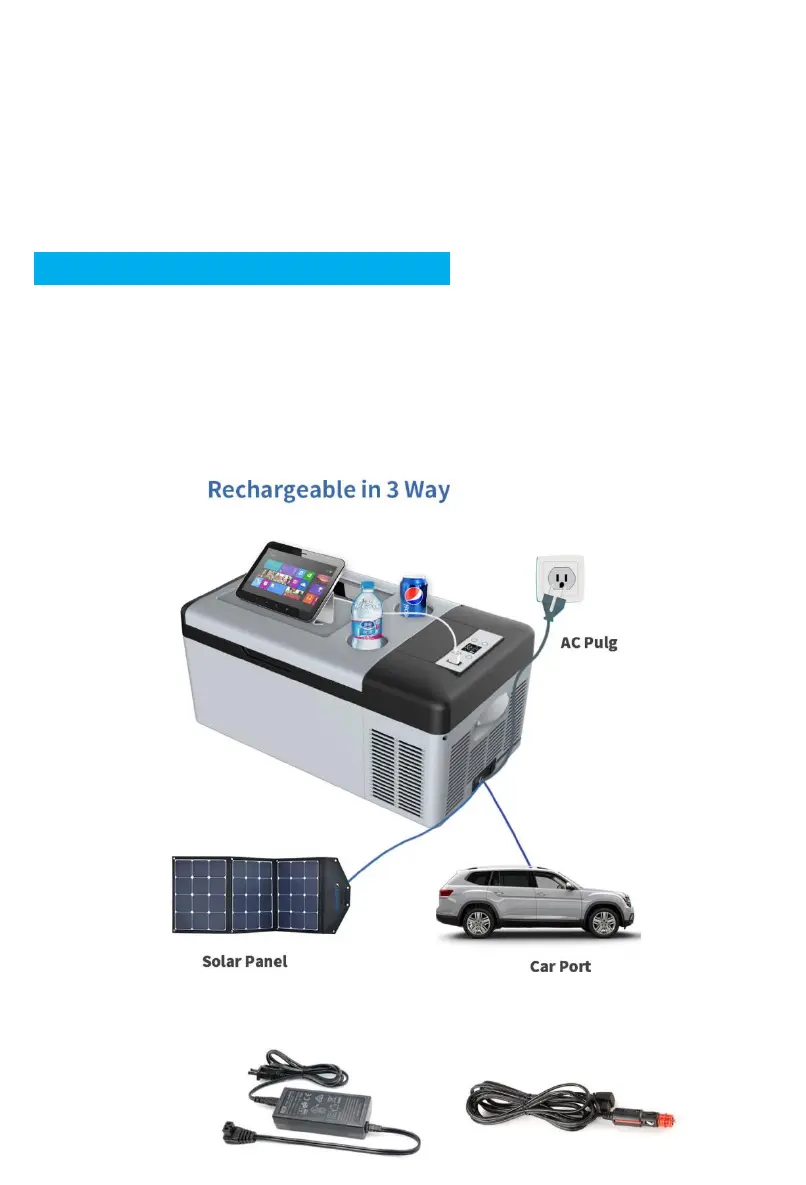 • Battery Charging: The refrigerator allows three kinds of charging methods.