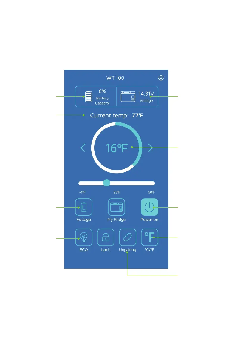 ACOPOWER PX30 - Main Interface Operation Settings; Temperature Adjustment and Unit Conversion; Operational Mode and Power Control; Voltage Protection and Bluetooth Link