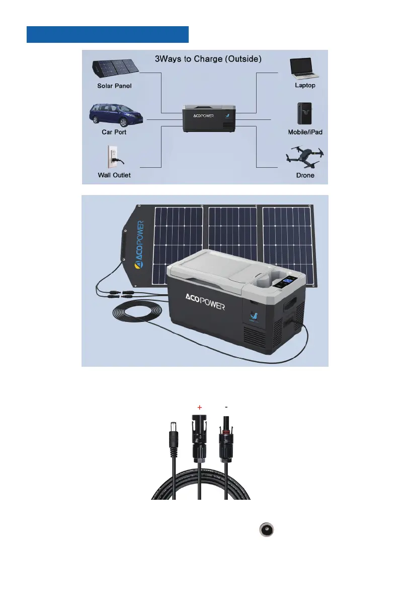 Insert the solar charge cable into the refrigerator’s “PV" terminal