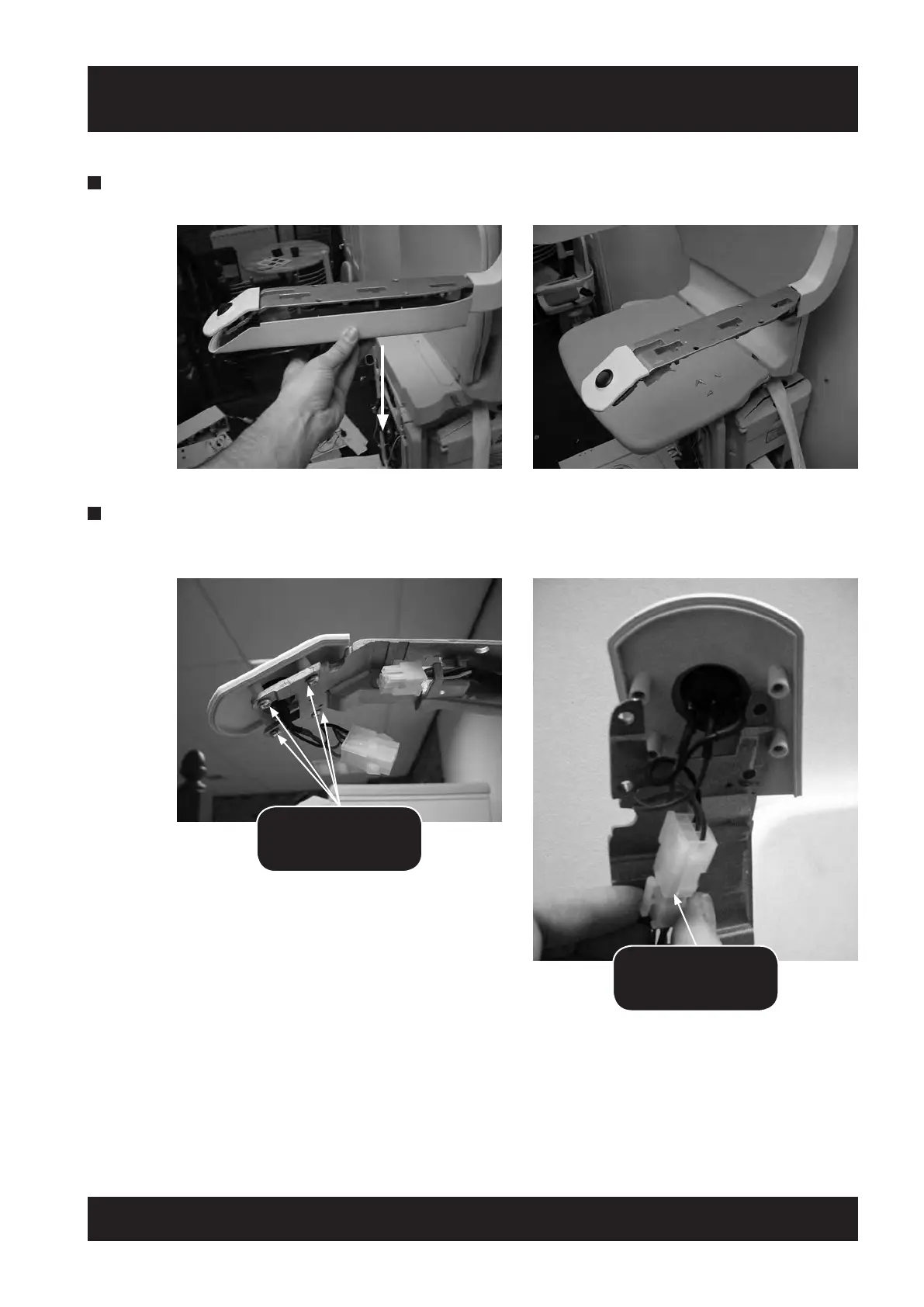 4 Disconnect Arm harness from the ON/OFF switch by disconnecting the block connectors as shown, and then