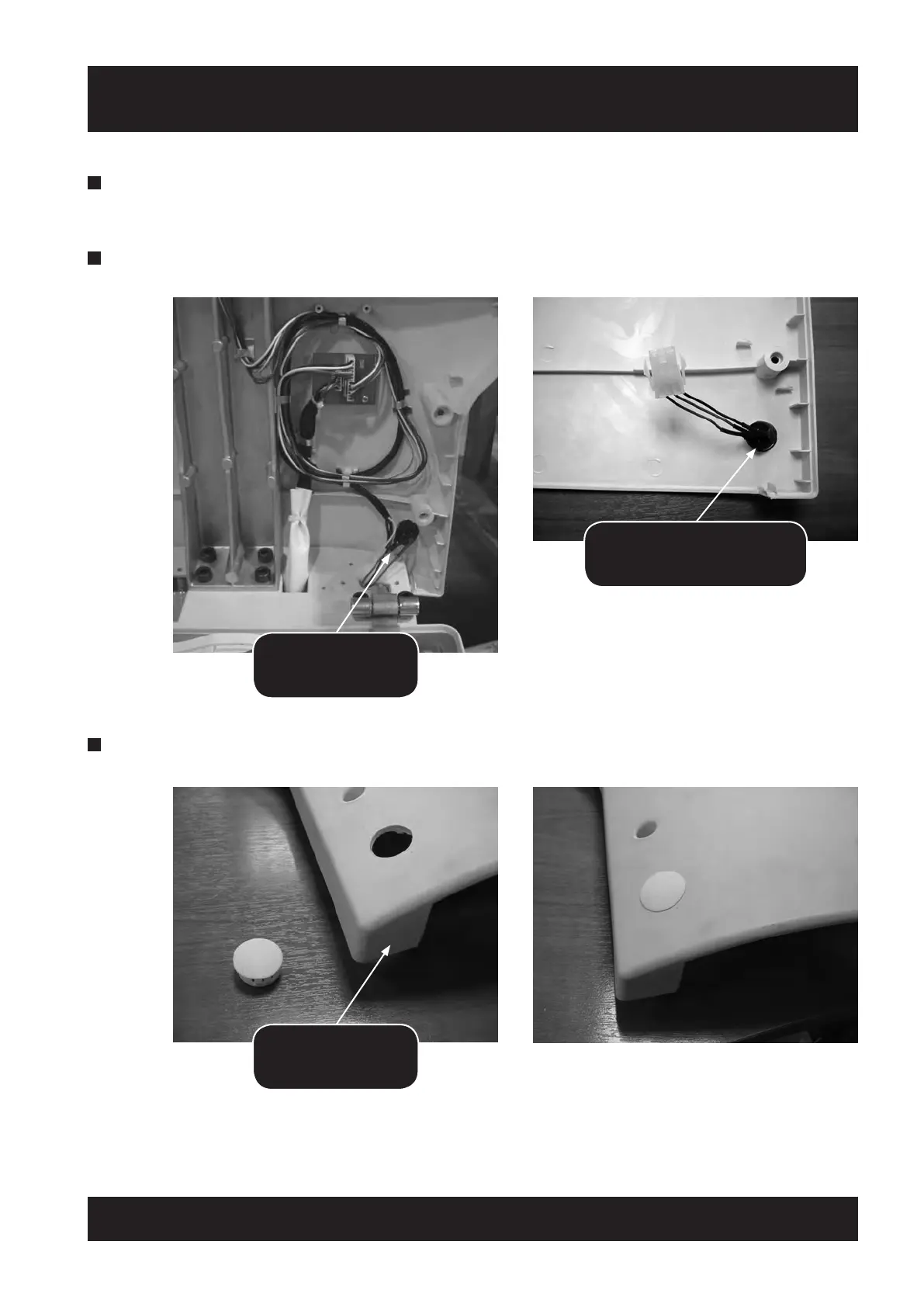4 Remove Yellow indication sticker (if present) from the back cover, and assemble hole plug by pressing in.