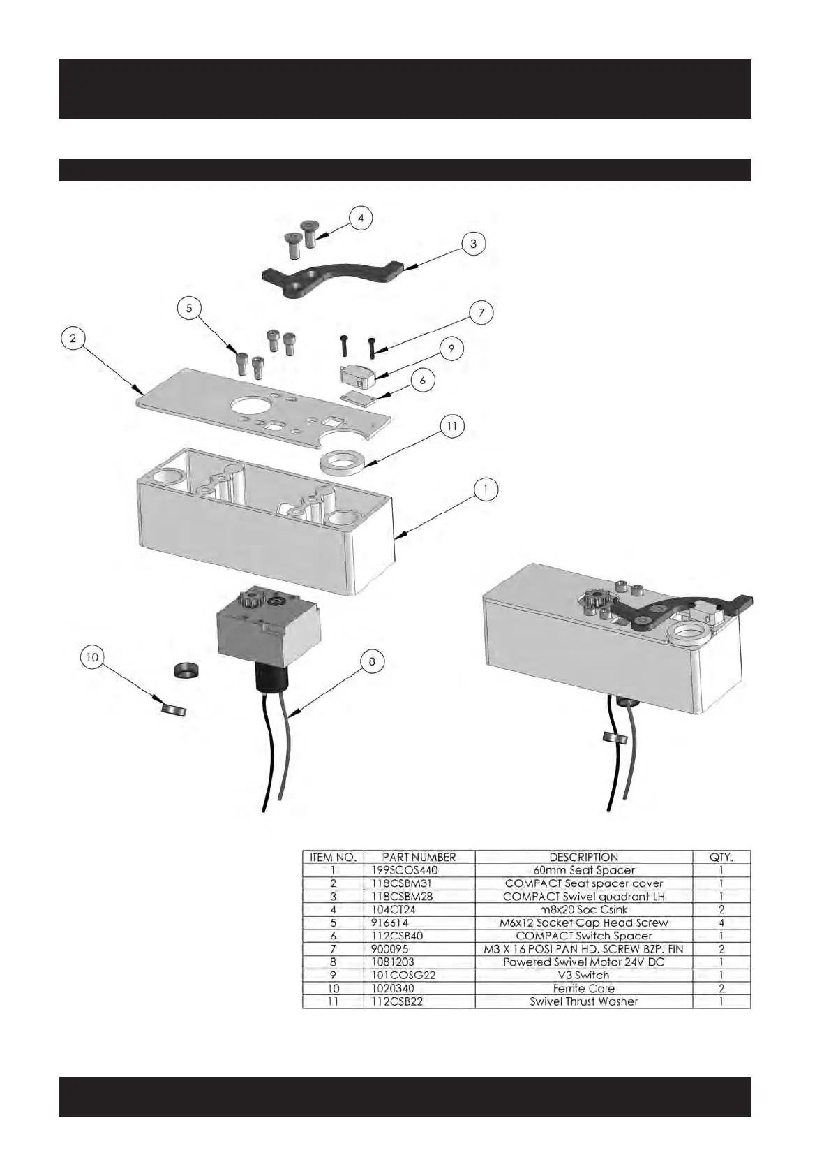 10.9.2 550 Powered Swivel L/H Seat Spacer Complete
