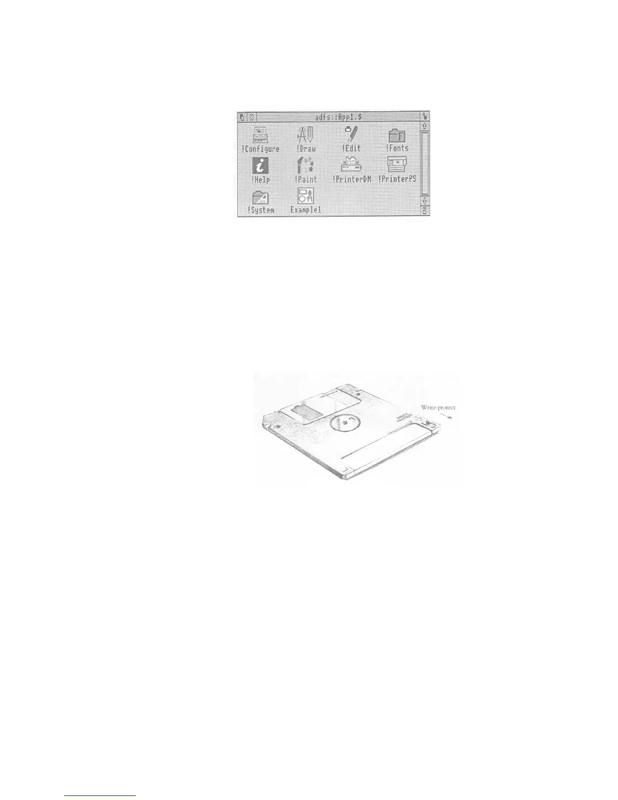 Write-protecting floppy The Applications discs are supplied write-protected. This means that you cannot