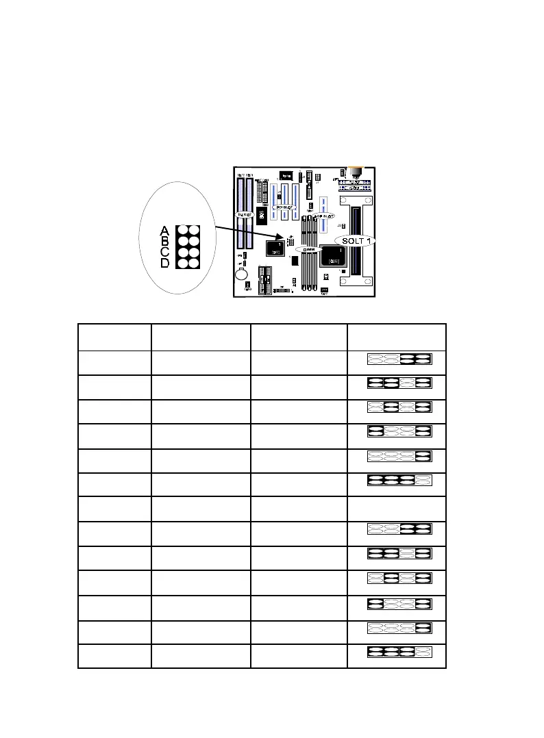 Set the jumpers by the Internal speed of the Intel CPU as follows:
