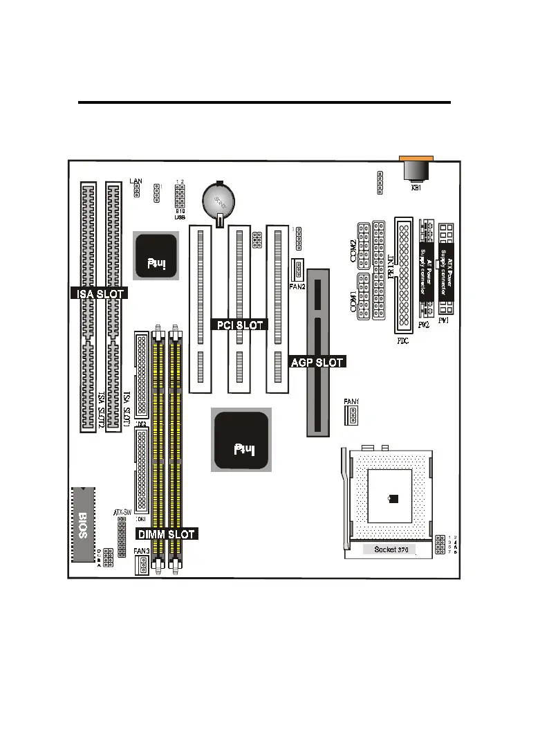 The 6BX85/6ZX85/6VIA85/6VIA85P Mainboard layout