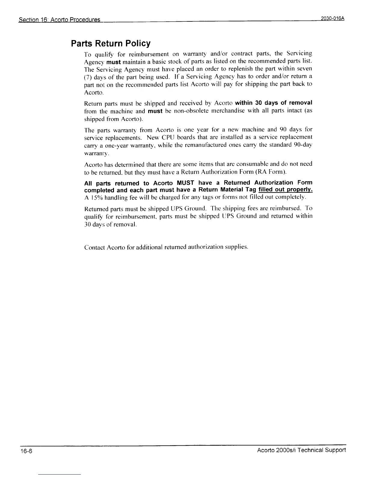 Parts Return