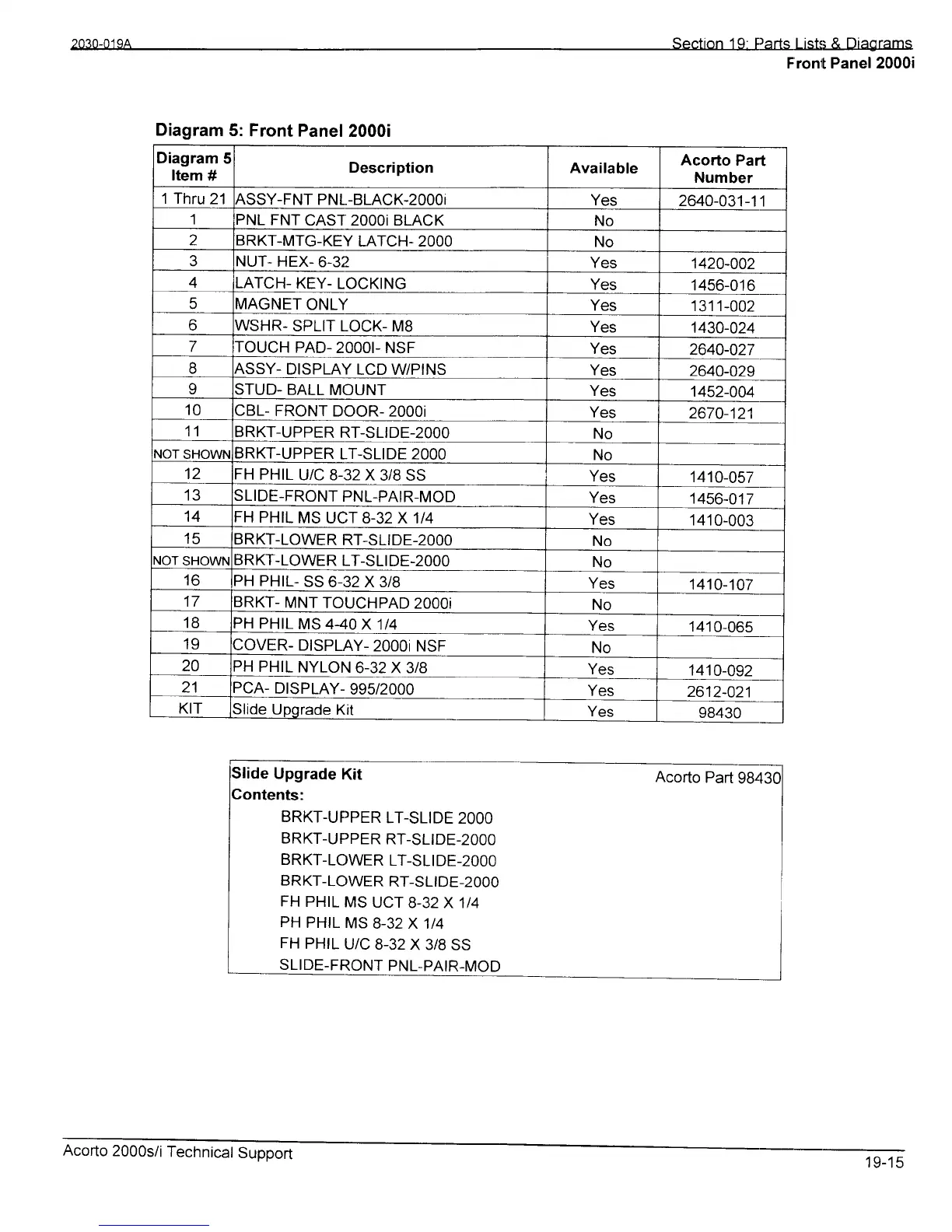 Section 19 Parts Lists; & Diagrams