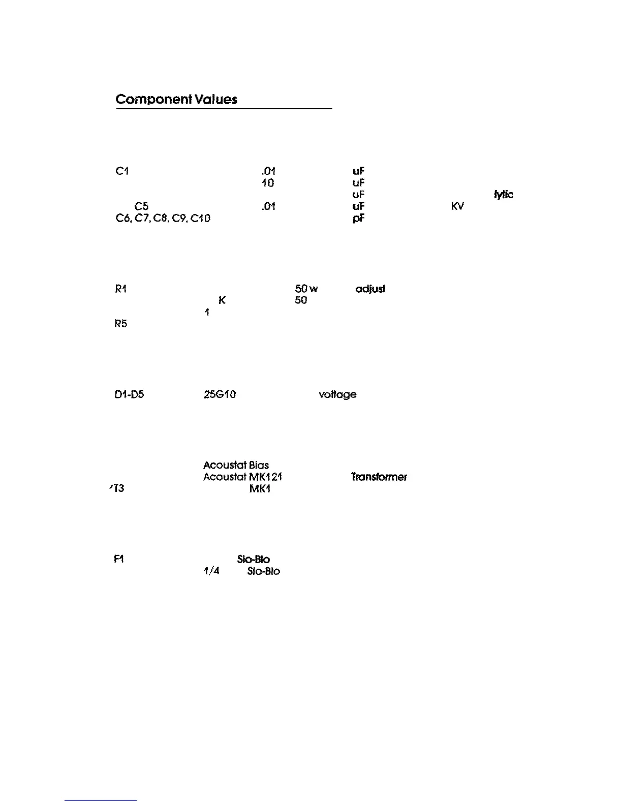 Acoustat ONE+ONE - Component Values List - MK-121