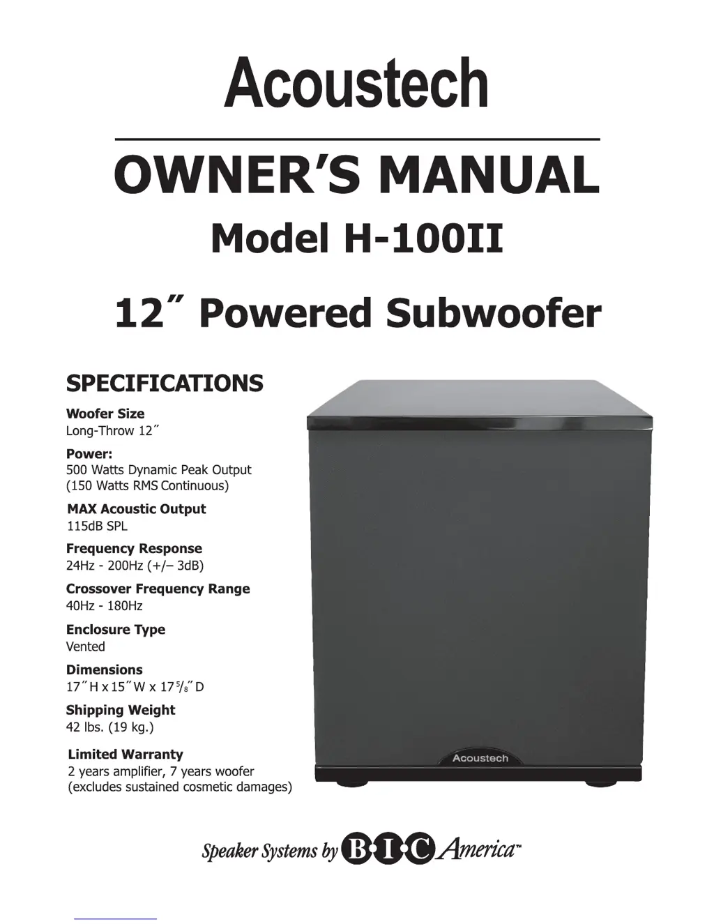 A humming or buzzing noise from your Acoustech Subwoofer can stem from several causes. It could be due to a ground loop, often originating from cable TV or satellite cabling. Try disconnecting the coaxial cable from your TV or cable box; if the hum disappears, the cable is the culprit. In this case, contact your cable company or acquire a 75 ohm ground loop isolator. Other potential causes include a faulty amplifier (disconnect all interconnects; if it still hums, contact technical support), problematic speaker wires or interconnects (try another cable, move the signal cable away from AC cables), or a light dimmer on the same AC circuit (use an AC line filter or a different circuit).