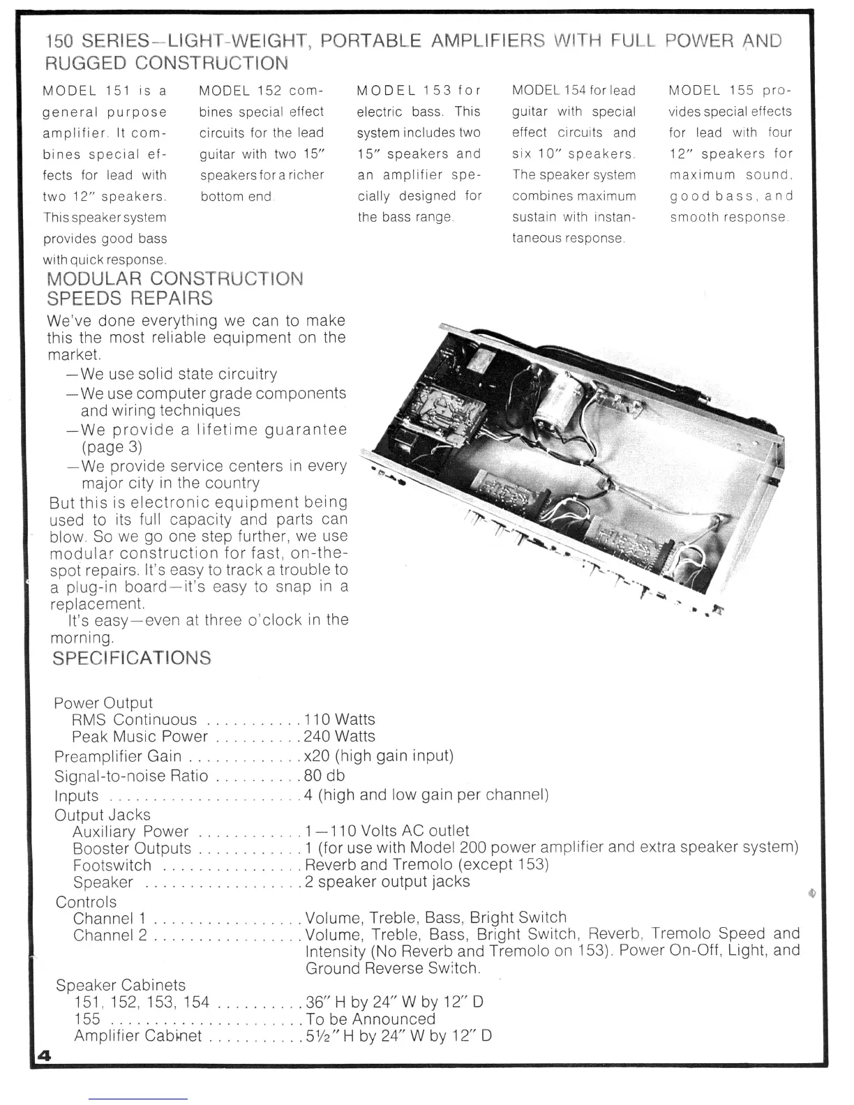 Acoustic 134 - 150 Series Amplifier Overview; Model 151 Description; Model 152 Description; Model 153 Description