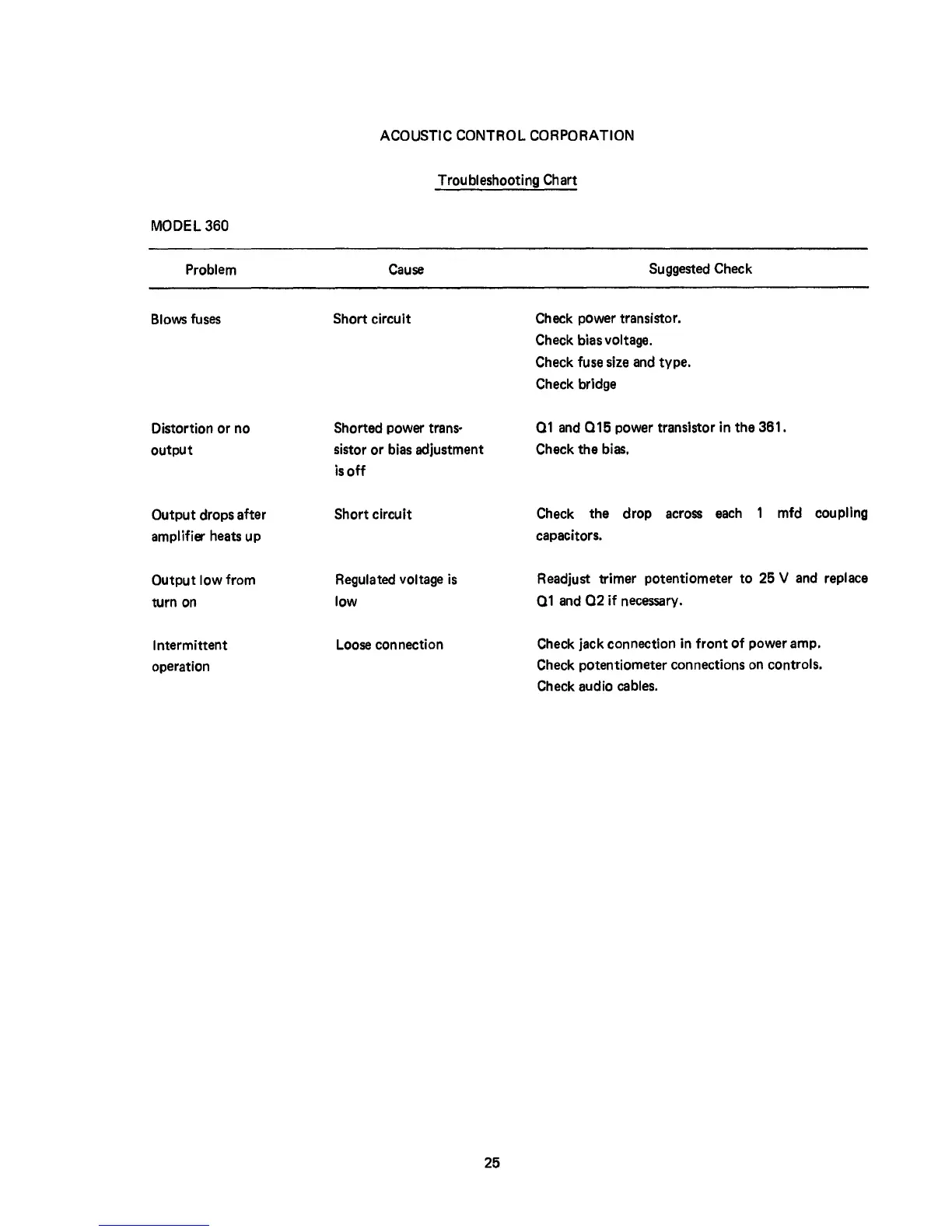 Acoustic 360 - Acoustic Control Corporation; Troubleshooting Chart