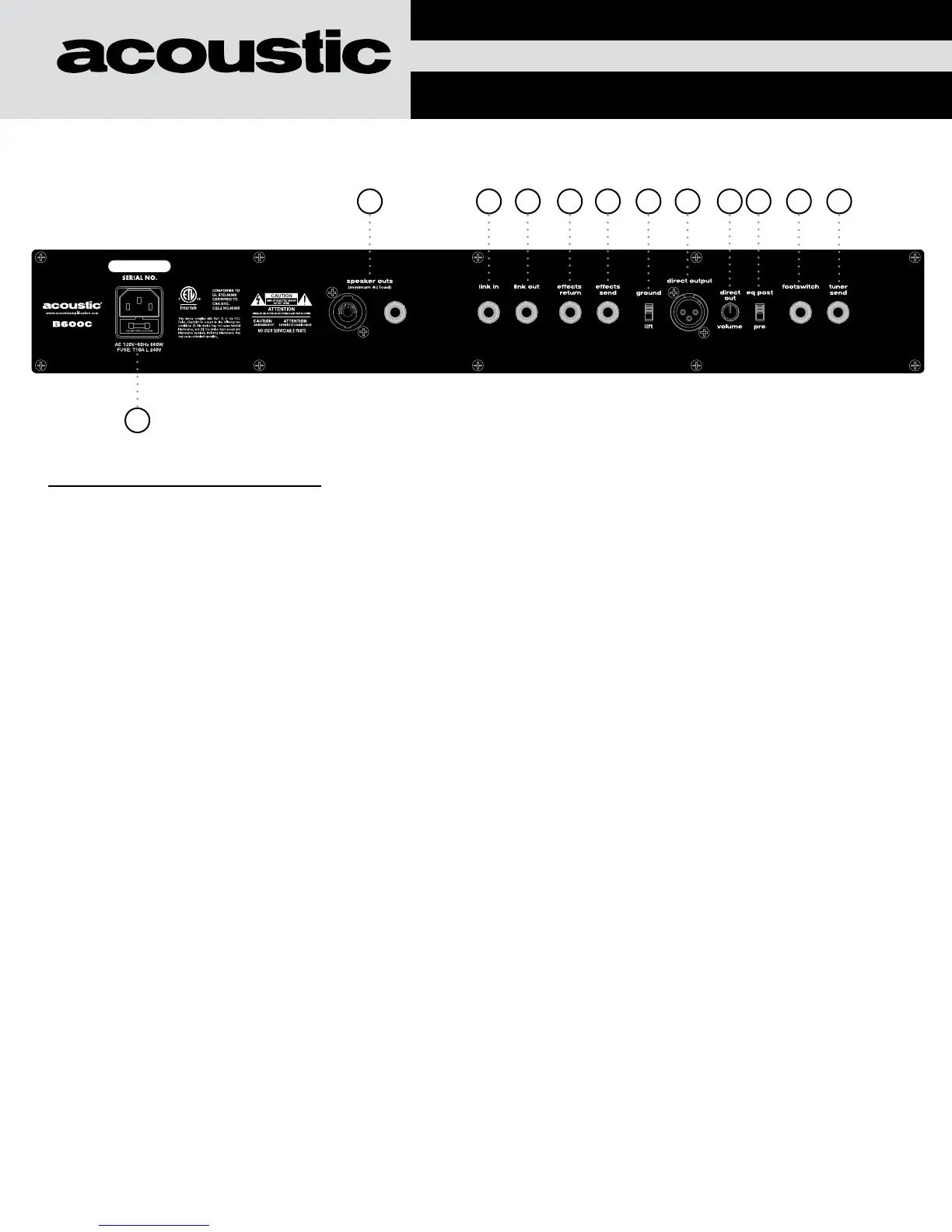 3. Link In: Accepts Input from another Acoustic™ bass combo or head’s ‘Link Out’ output. This allows the user to link 2 combos or