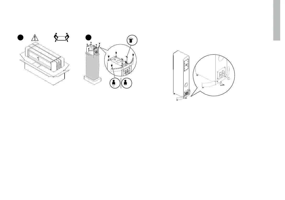 Concept50音箱只能安装在地板上。建议在开包过程中,如图所示安装
