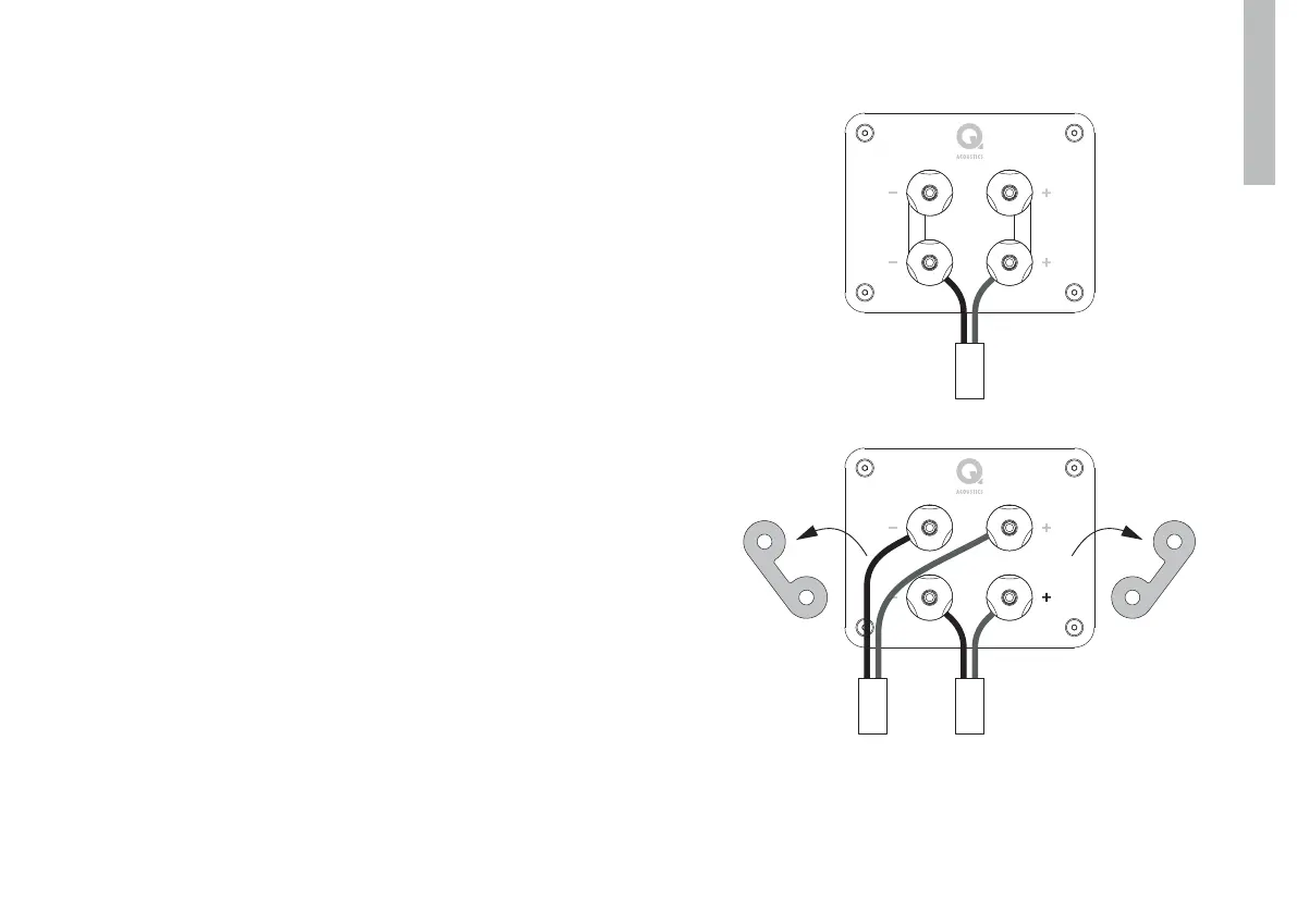 请将音箱的黑色 (-) 接线端与放大器上相应的黑色负极 (-) 接线端连