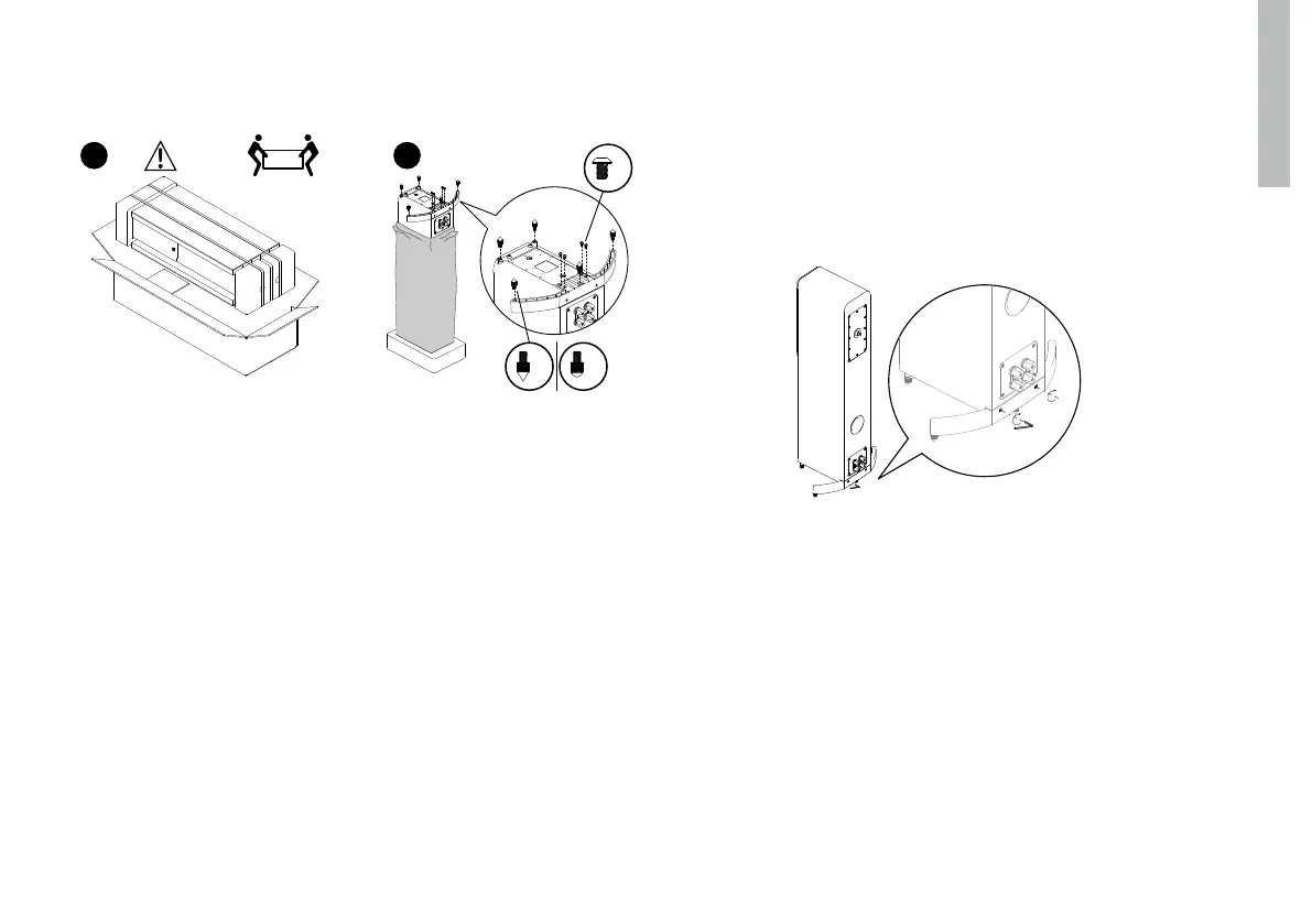 os pés até o altifalante estar nivelado e estável. Finalmente, bloqueie