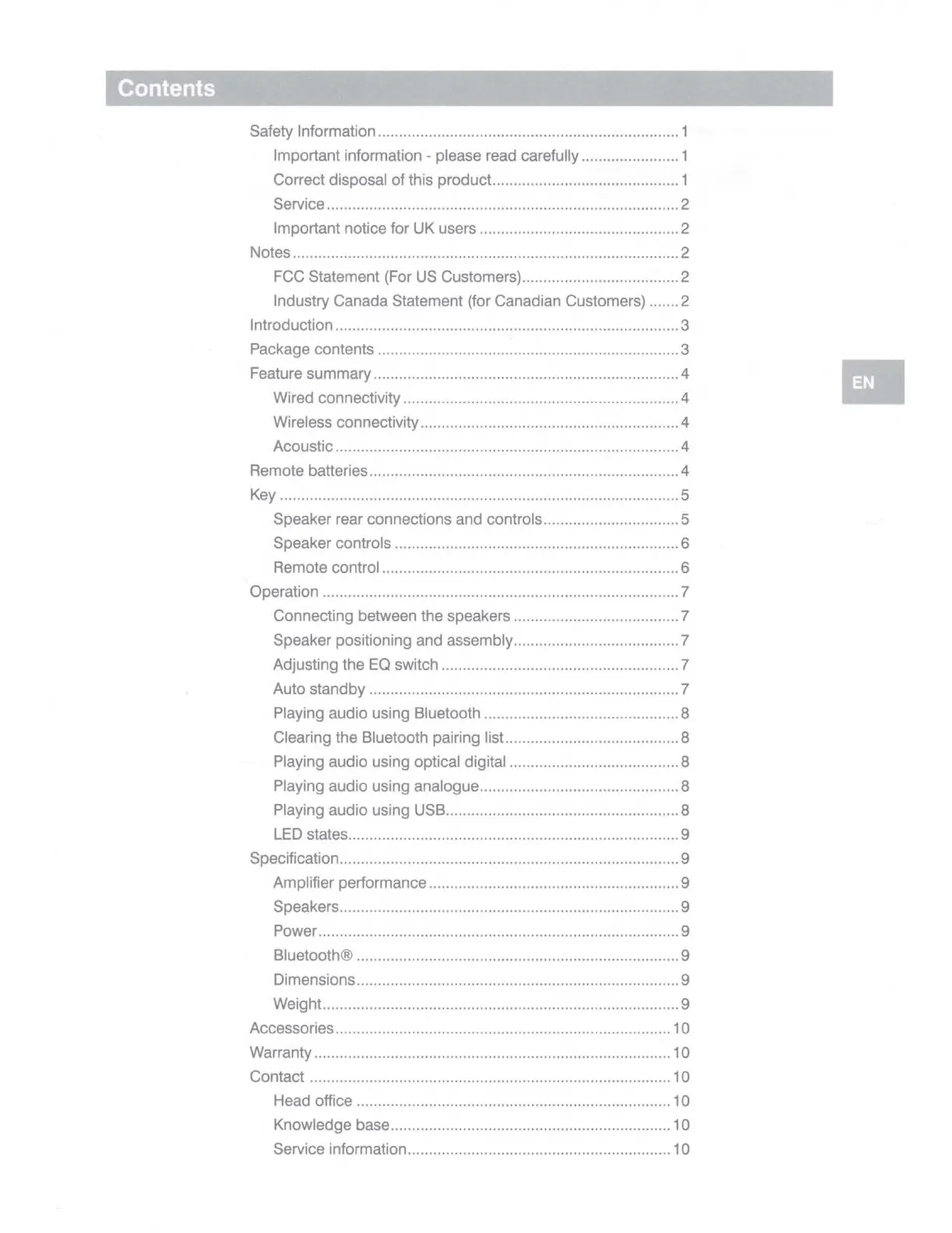 Contact ..................................................................................... 10
