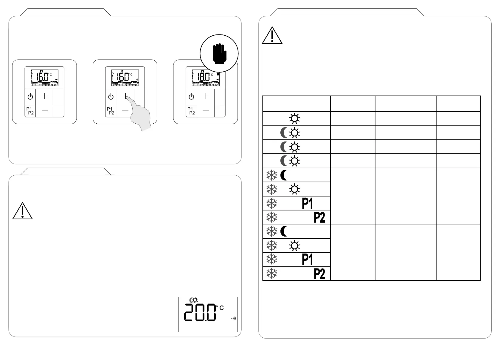 In the programmed operating modes for your appliance (P1 or P2) you can override the