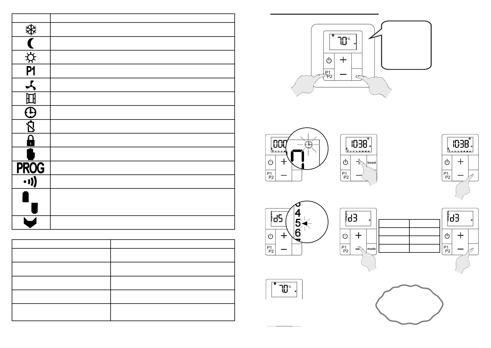 Durant la phase de réglage, un appui sur P1P2 permet un retour à l’écran précédent.