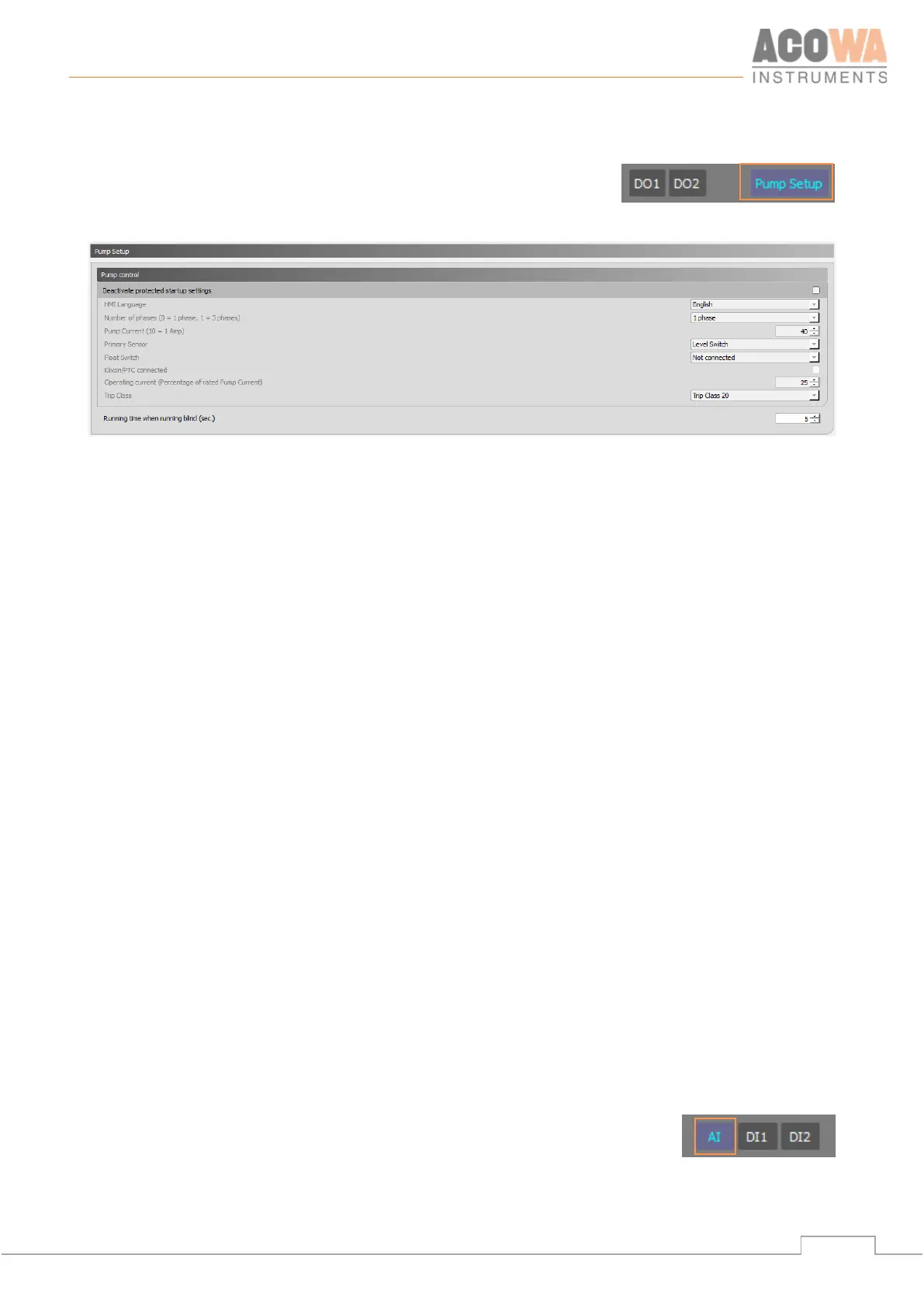 Pump current: Here you enter the rated current of the pump (10 = 1 amp.)