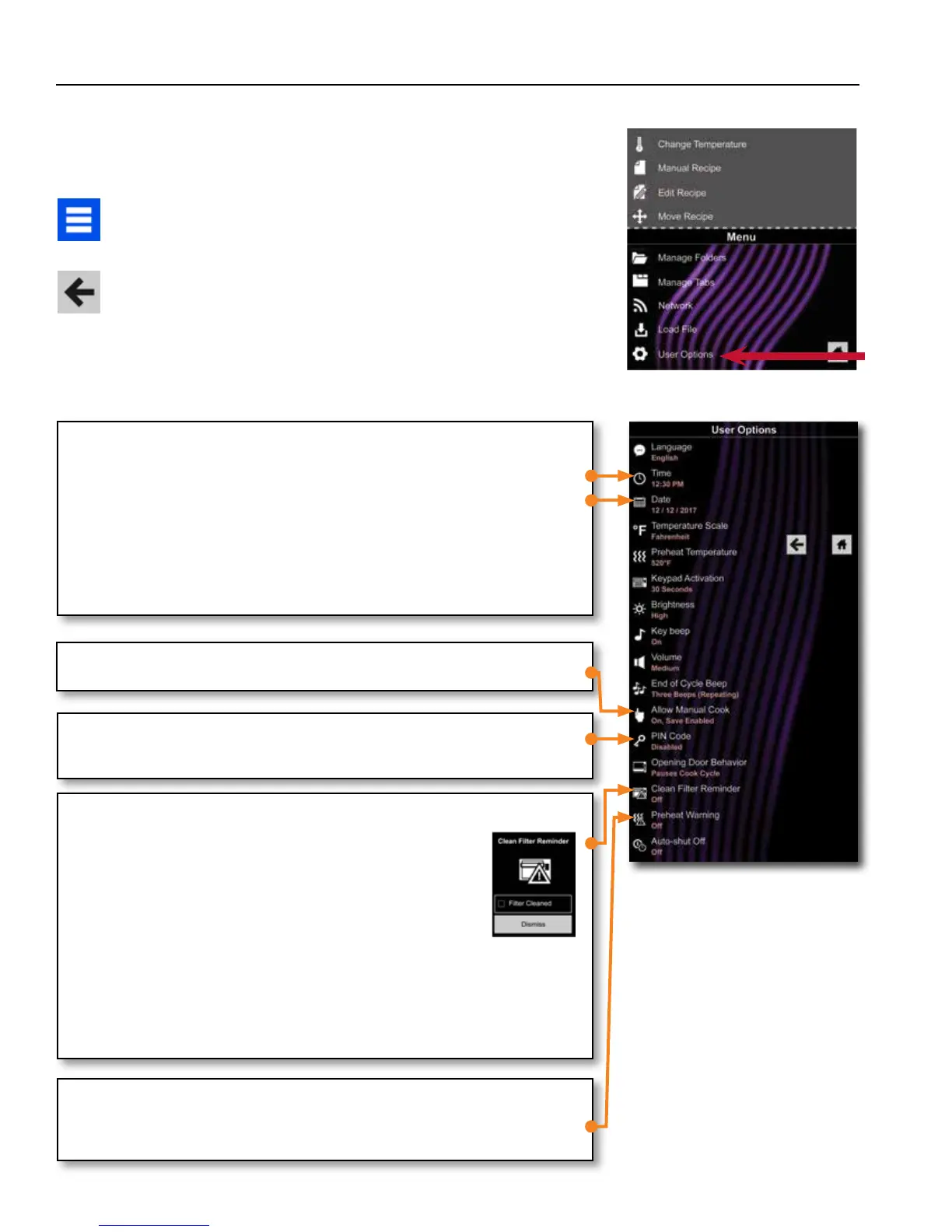4. Press the Left Arrow Icon to return to the Menu after making each change.