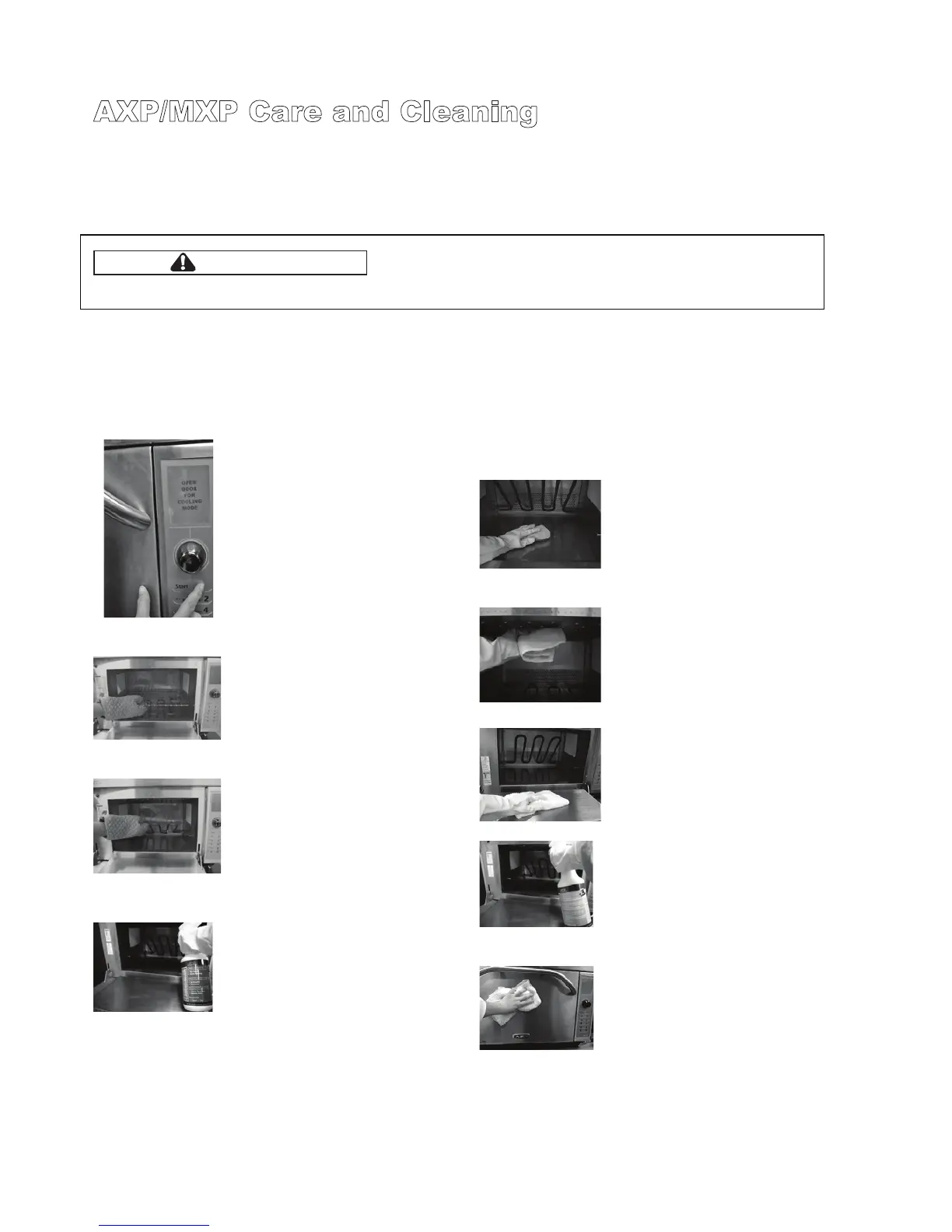 Daily Cleaning Recommendations: Follow the recommendations below for proper maintenance of the AXP/MXP oven.