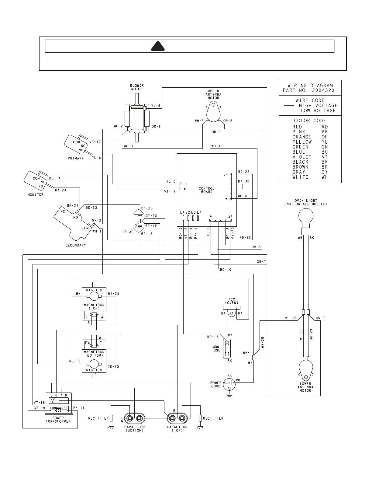 To avoid risk of electrical shock, personal injury or death, disconnect power to oven and discharge capacitor