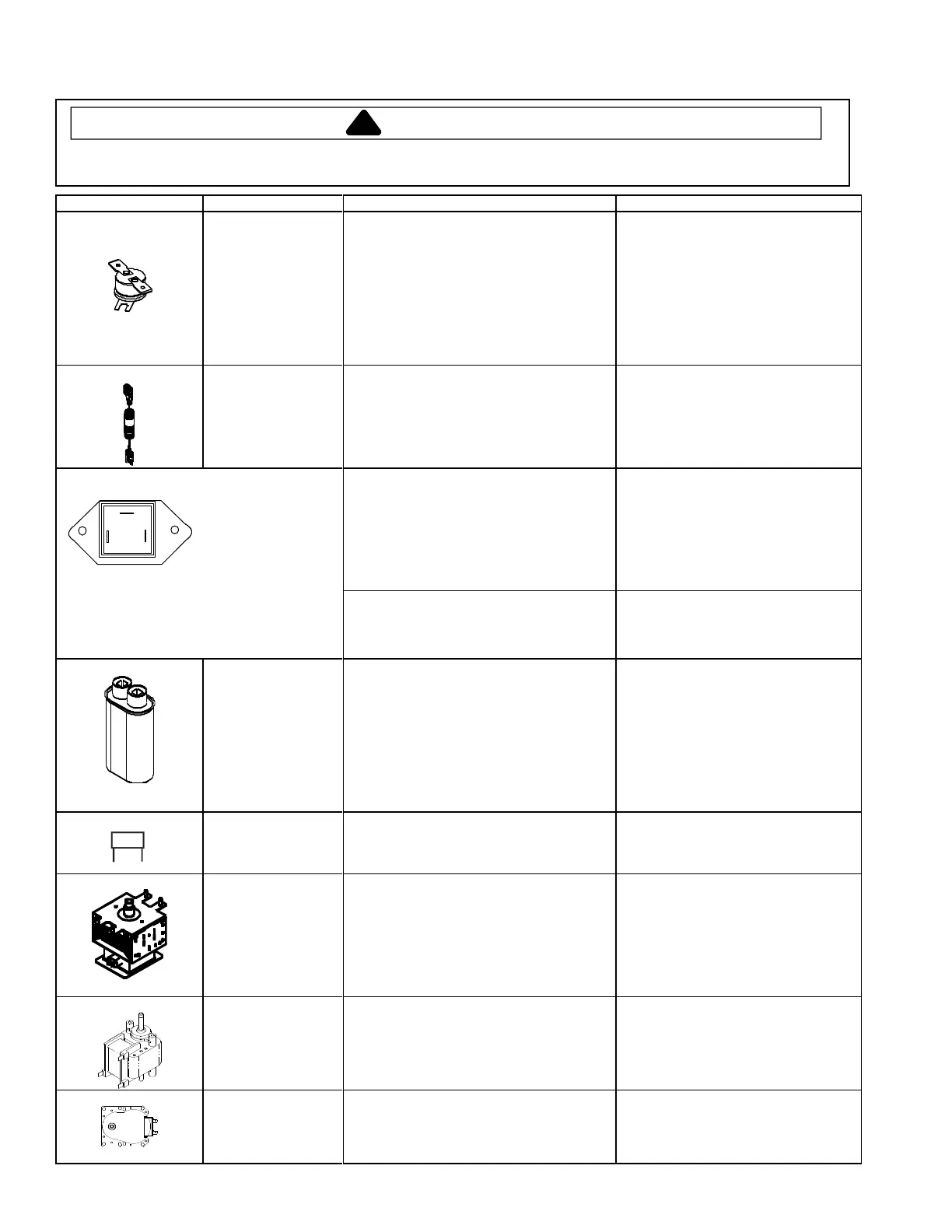 To avoid risk of electrical shock, personal injury or death; disconnect power to oven and discharge capacitor