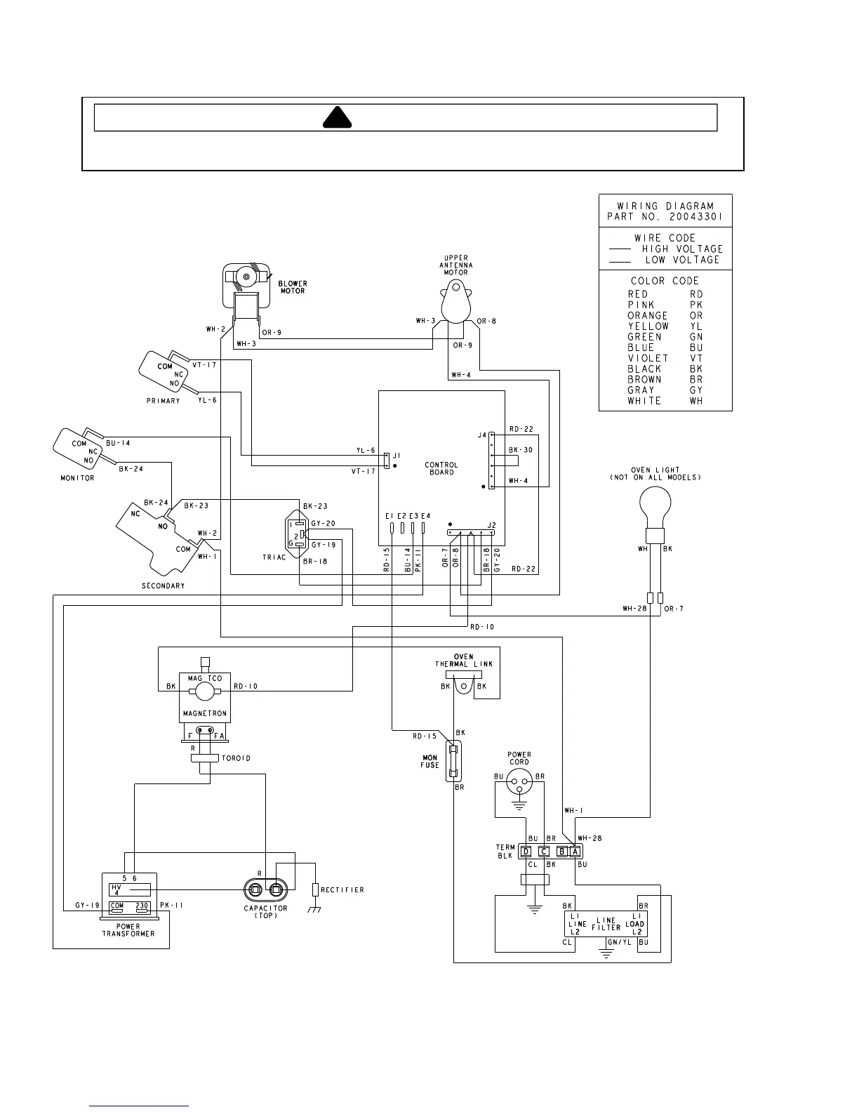 To avoid risk of electrical shock, personal injury or death, disconnect power to oven and discharge capacitor