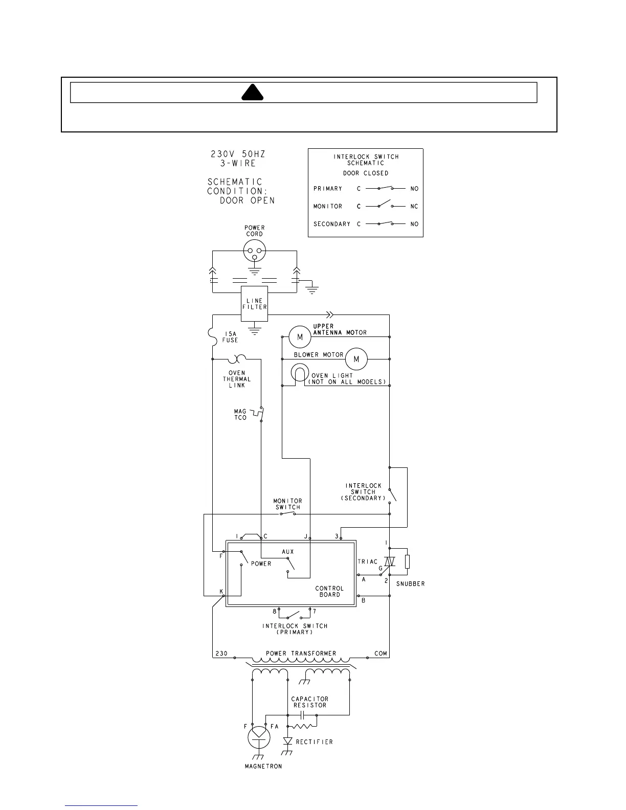 To avoid risk of electrical shock, personal injury or death, disconnect power to oven and discharge capacitor