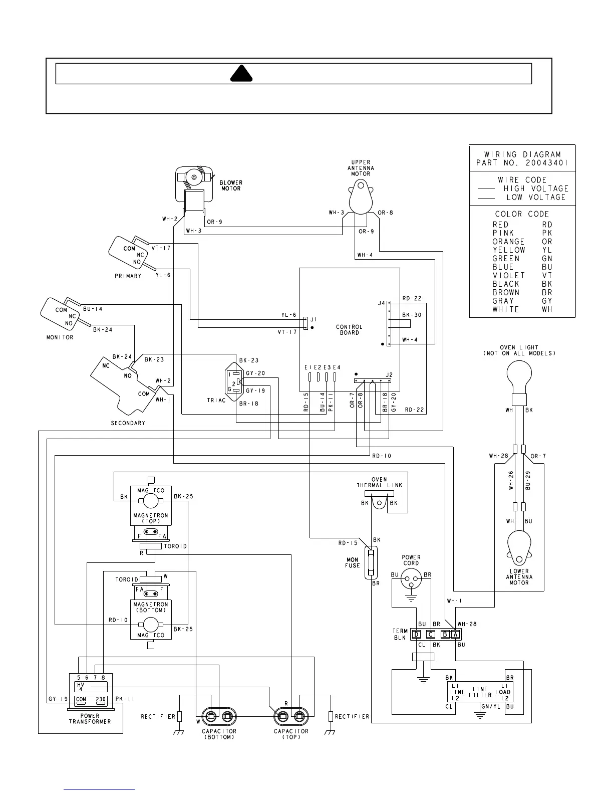 To avoid risk of electrical shock, personal injury or death, disconnect power to oven and discharge capacitor
