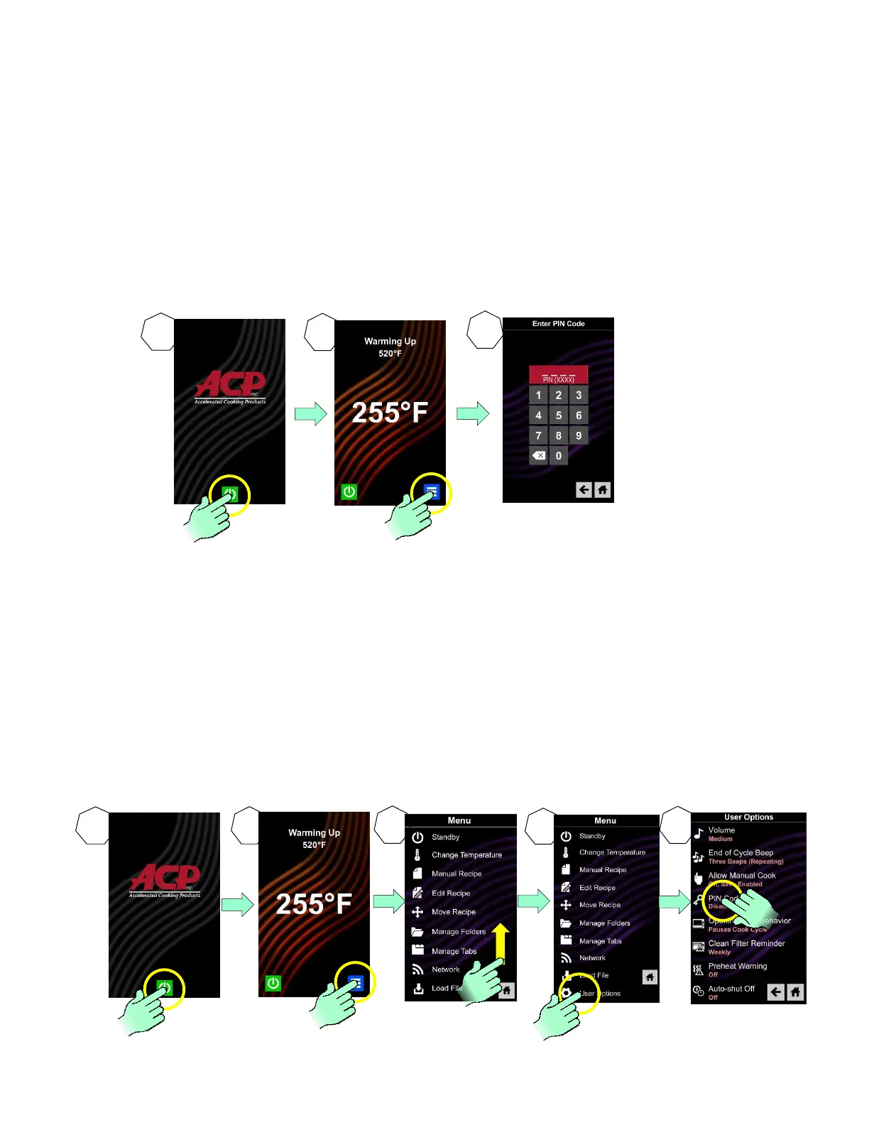 If the PIN Code is not enabled, it must be enabled in the User’s Options. With oven on, press the