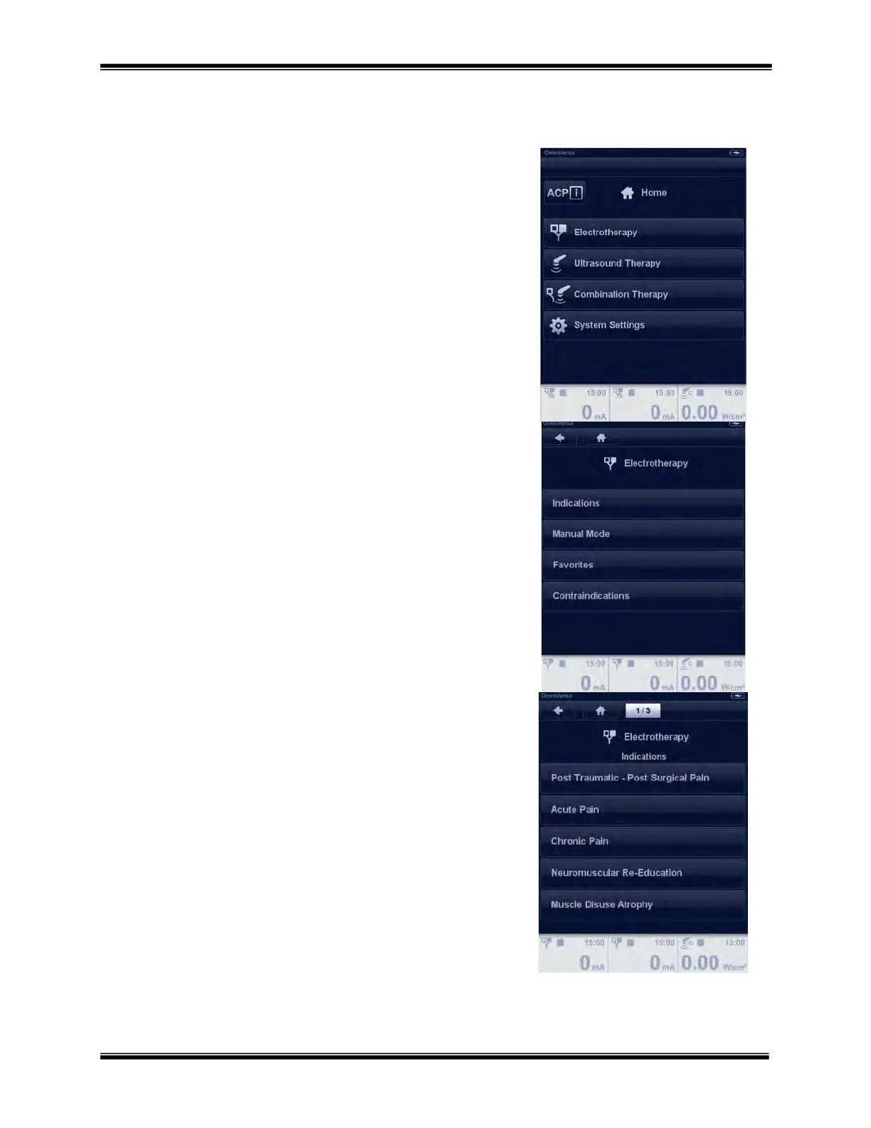 The Electrotherapy menu provides access to the ways you can navigate