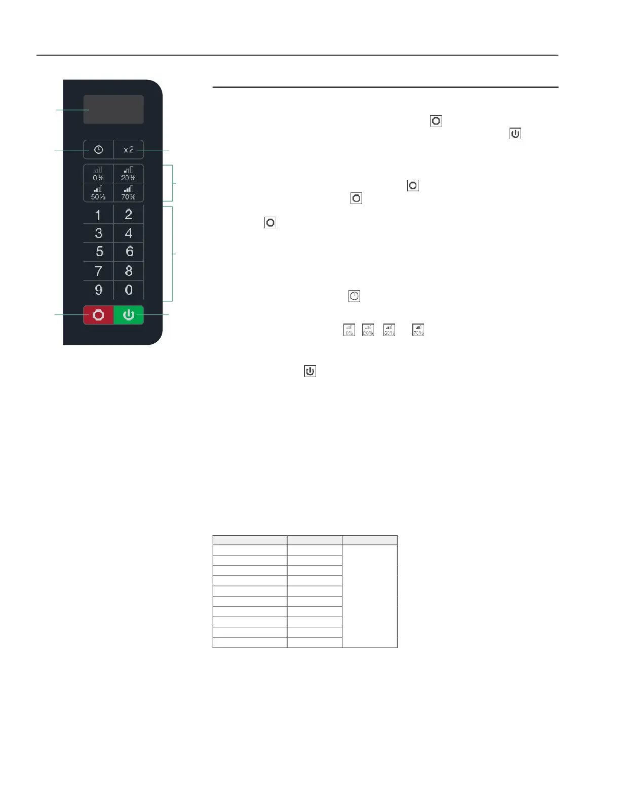 4. Press POWER LEVEL key , , or to select power level. LED will